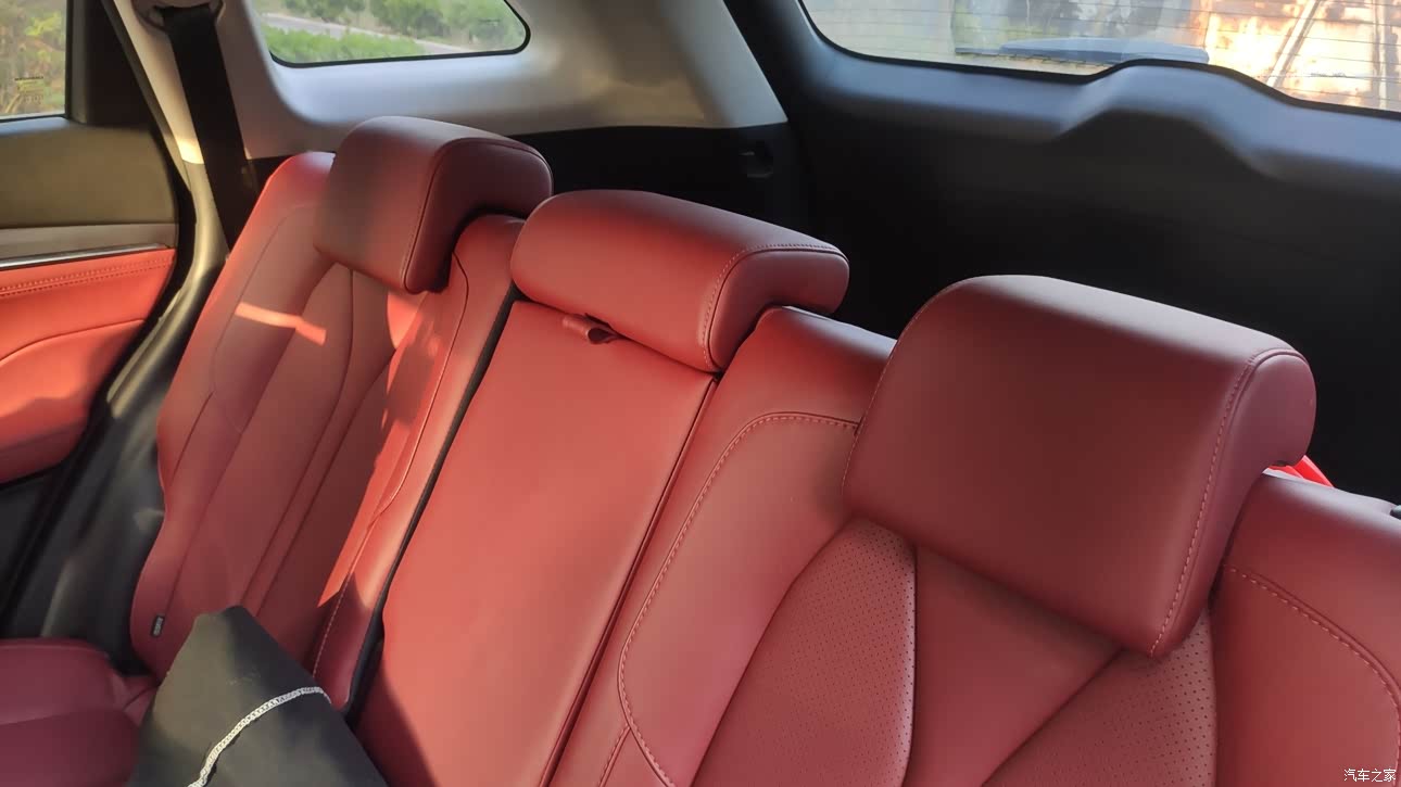 后排的空间可以说非常宽敞,靠垫的高度适中,头枕偏硬。