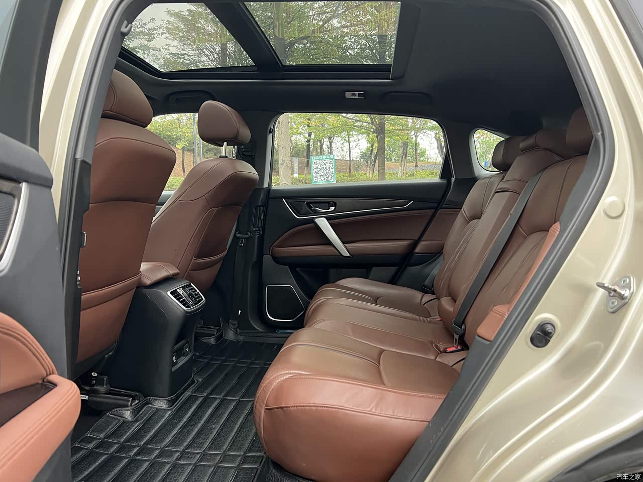 2.82米的轴距,我一米七一在驾驶位舒适的坐姿下,坐在后排,腿部空间还有3拳半左右的距离,中间位置甚至可以翘二郎腿了,后排空间非常的宽敞,平时坐上3个人都非常轻松。最值得称赞的是后排地毯是完全平整的,没有任何凸起,比和很多车都做得好,坐在中间位置的人不会很难受。