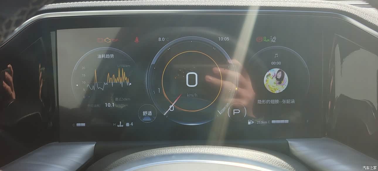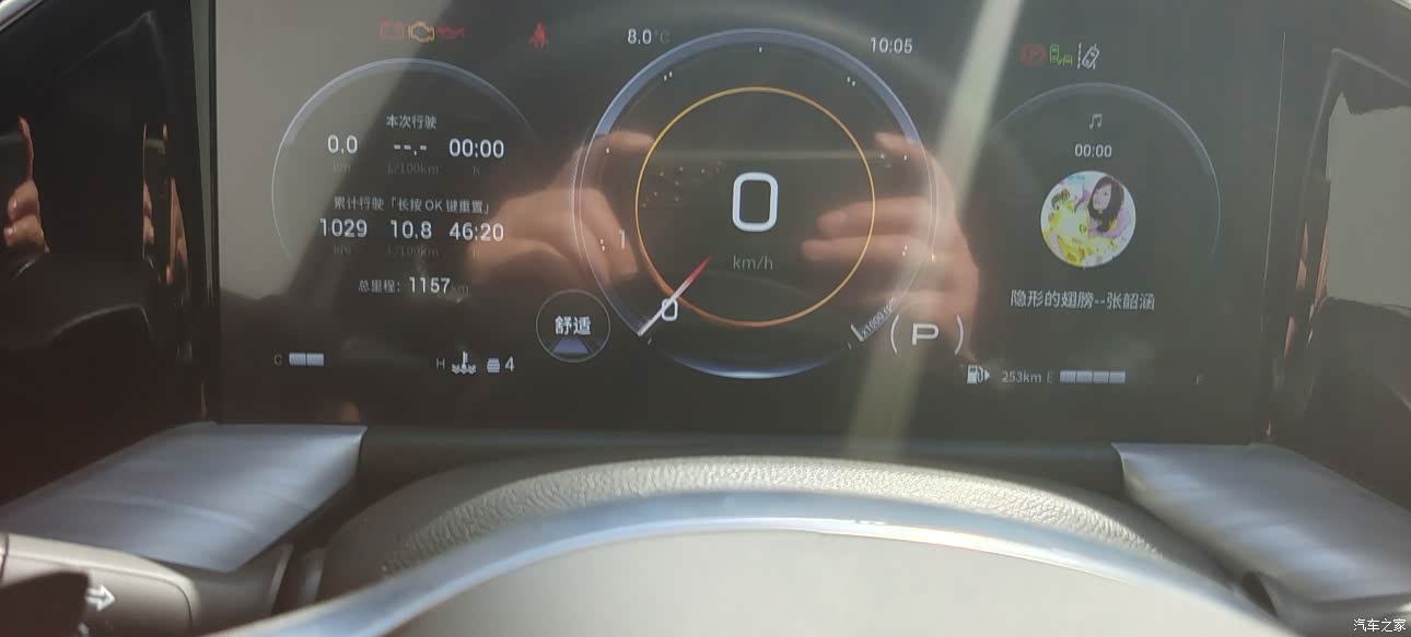 油耗的话因为大部分时间在市区里开,表显11升多,有时堵车也会上到12升多,跑高速的话是8升多,平均下来表显10.5左右