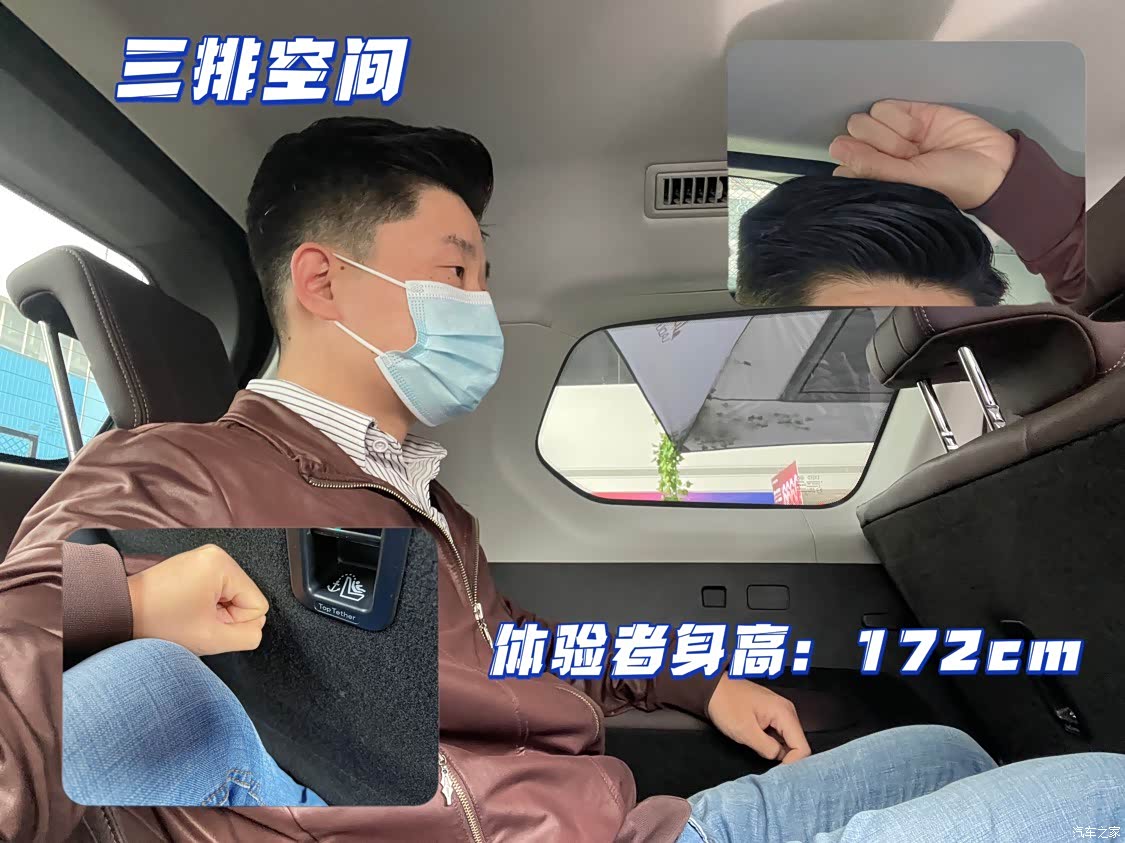揽月这款中大型SUV车内空间还是很充足的,前排的空间非常大,调整好坐姿以后头顶的空间大概还有20公分,并且坐在车里的视野也是非常好的。二排空间也是很充足的,头顶空间大概十多公分距离,在保证腿部空间充足的情况下,第三排的空间也是不错的,头顶和腿部都是有一拳的距离,而且二排座椅也做了升高设计,脚可以轻松放在二排座椅下面。
