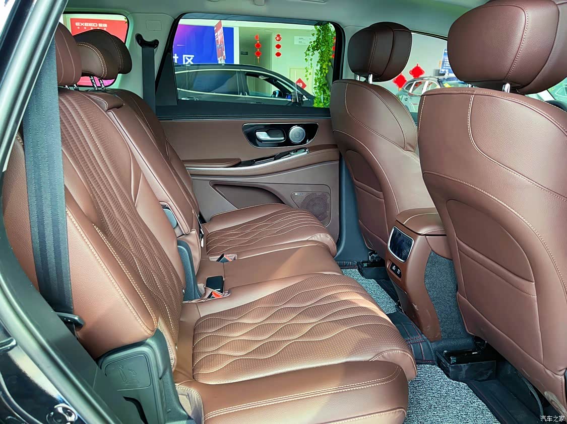 在内饰方面这台车的质感还是不错的,棕色的内饰显得豪华感十足。前排座椅的厚度也是很厚实的,坐上去的质感也是相当不错,前排的座椅调节按键在门板上的这个设计还是很细心很好用的,全车用的是SONY音响音质还是不错的,在7座车型中进入第三排是需要把二排座椅前移的,在二排座椅上面也设置了有一键前移的功能。不过三排座椅就明显薄了一些,这个可能也是为了能够实现三排座椅放平而做出的牺牲。