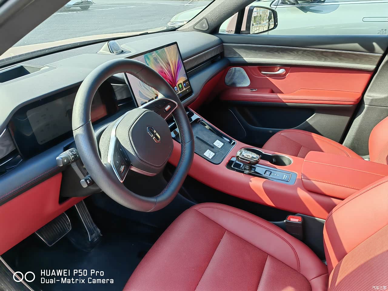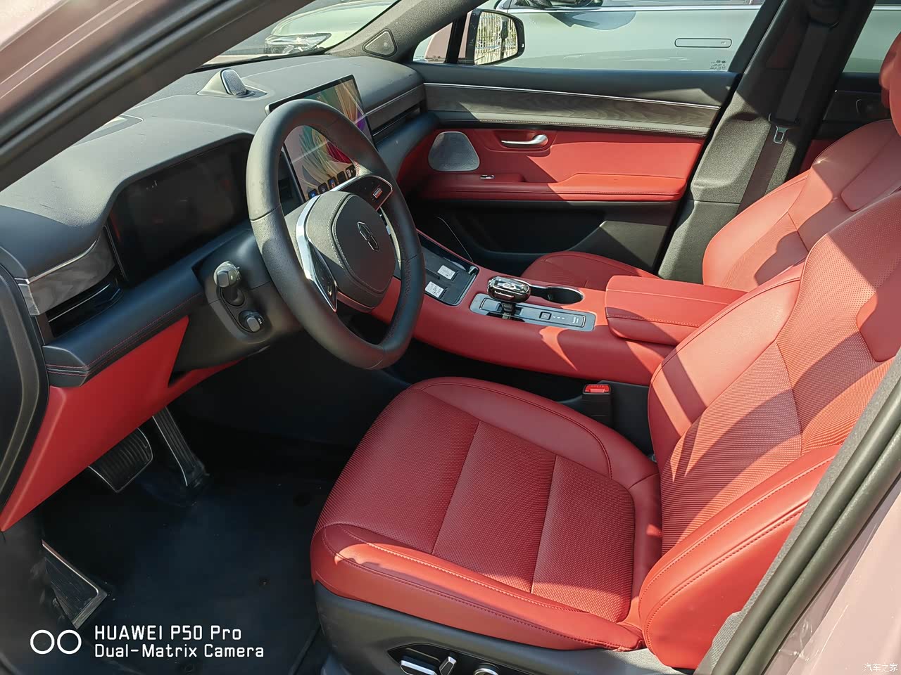 内饰整体做工还是非常不错的,基本都是软包的。玻璃都是隔音玻璃,试驾车是个骚红色,很漂亮,两个40瓦快充也非常实用