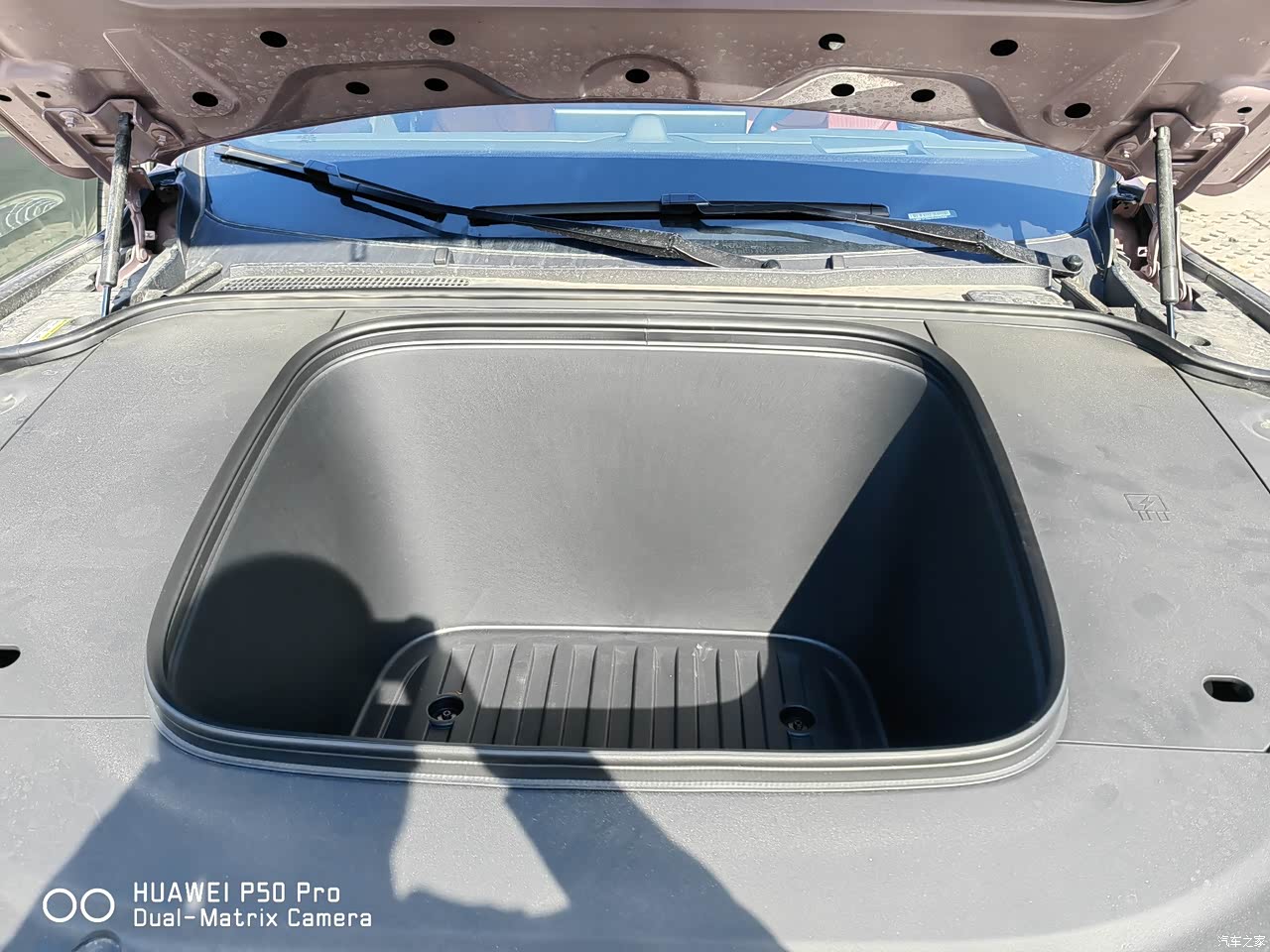 乘坐空间感觉挺不错的,头顶上一拳距离,后排腿部空间两拳,有个非常大的前备箱,放个榴莲啊,放个海鲜啦,这些有怪味的东西
