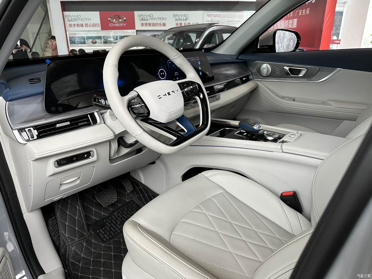 瑞虎8 PRO新能源的内饰采用蓝白双拼设计,质感相当出色,两块12.3英寸屏幕很好的展现了科技感,并内置Lion 5.0 AI科技智慧座舱和8155芯片,其它配置方面,新车提供W-HUD平视显示、全体感女皇尊享座椅以及SONY豪华8扬声器环绕音响,实用性和舒适性都得到了非常完善的考虑。