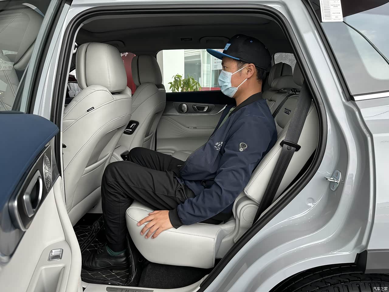 瑞虎8 PRO新能源可以选配七座座椅布局为2-3-2,后排座椅可以比例放倒,第二排座椅可以靠背调节。副驾驶还有按摩功能(如果主驾驶也有就更棒了),选配的第三排还是比较拥挤,但是实用性还是有的。如图所示第二排,本人身高175cm,腿部还有一拳两指,头顶还有一拳四指。