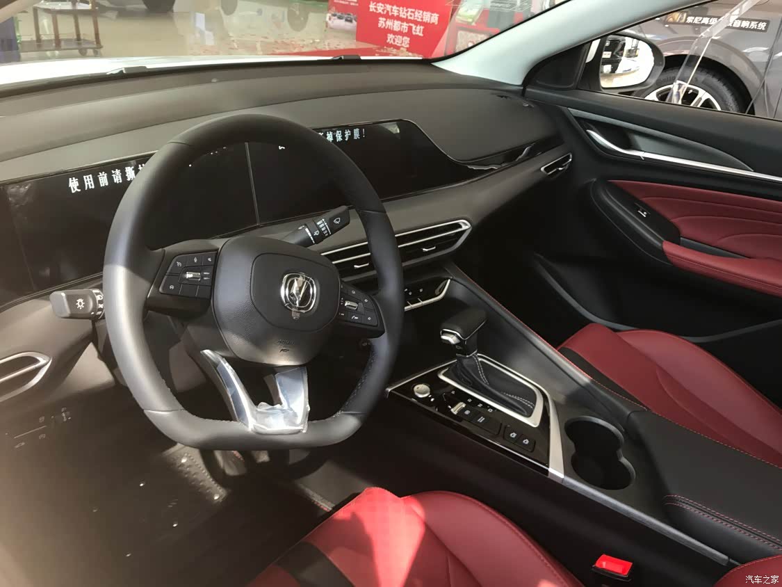 内饰值得肯定,自主品牌的轿车,双联屏造型,红黑色座椅,车内大部分都是软包,让我感觉很舒服,用料也很优秀,仪表显示可根据驾驶模式进行切换,主题丰富,不会开车乏力视觉疲劳
