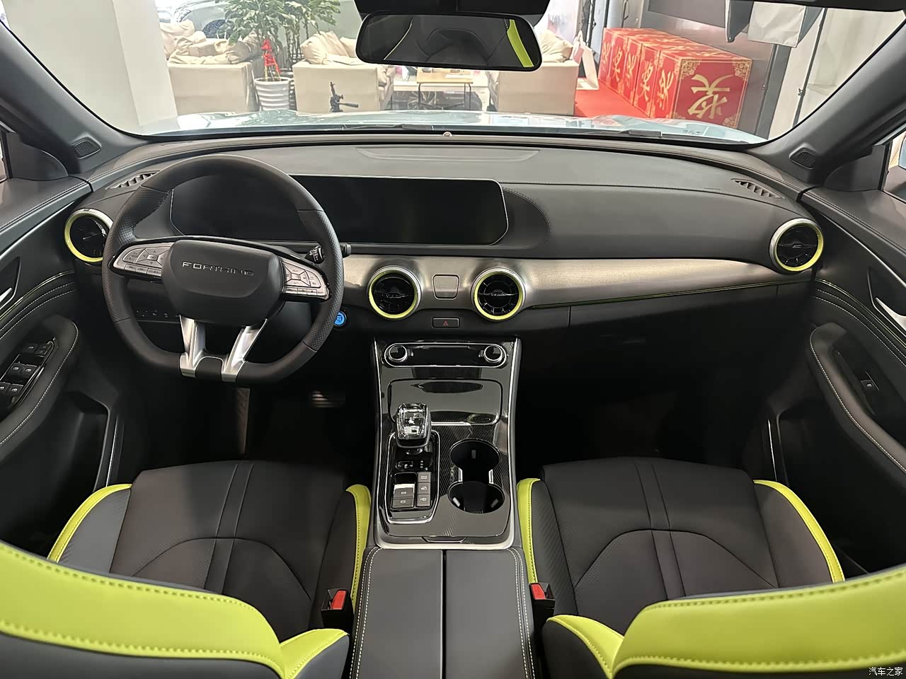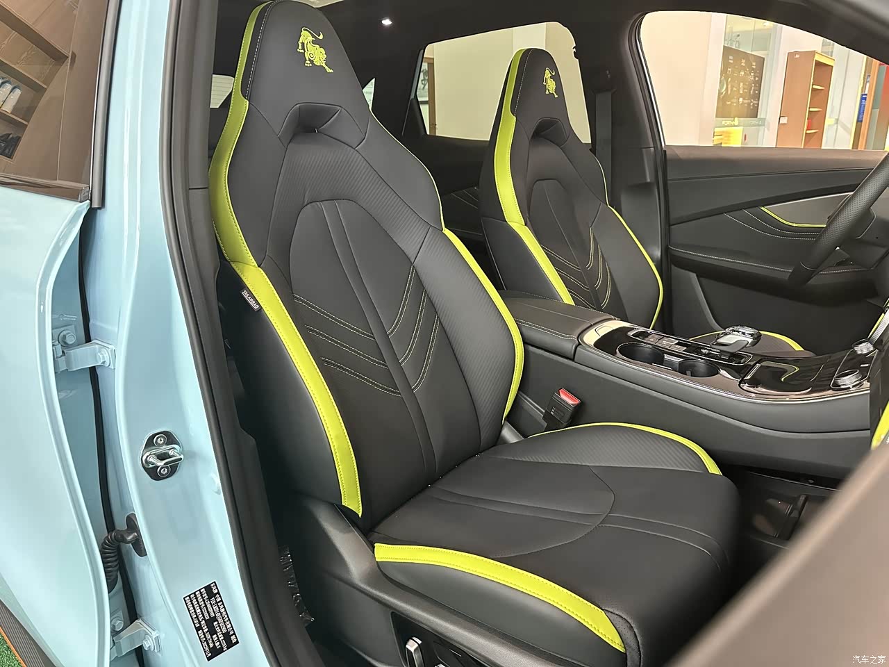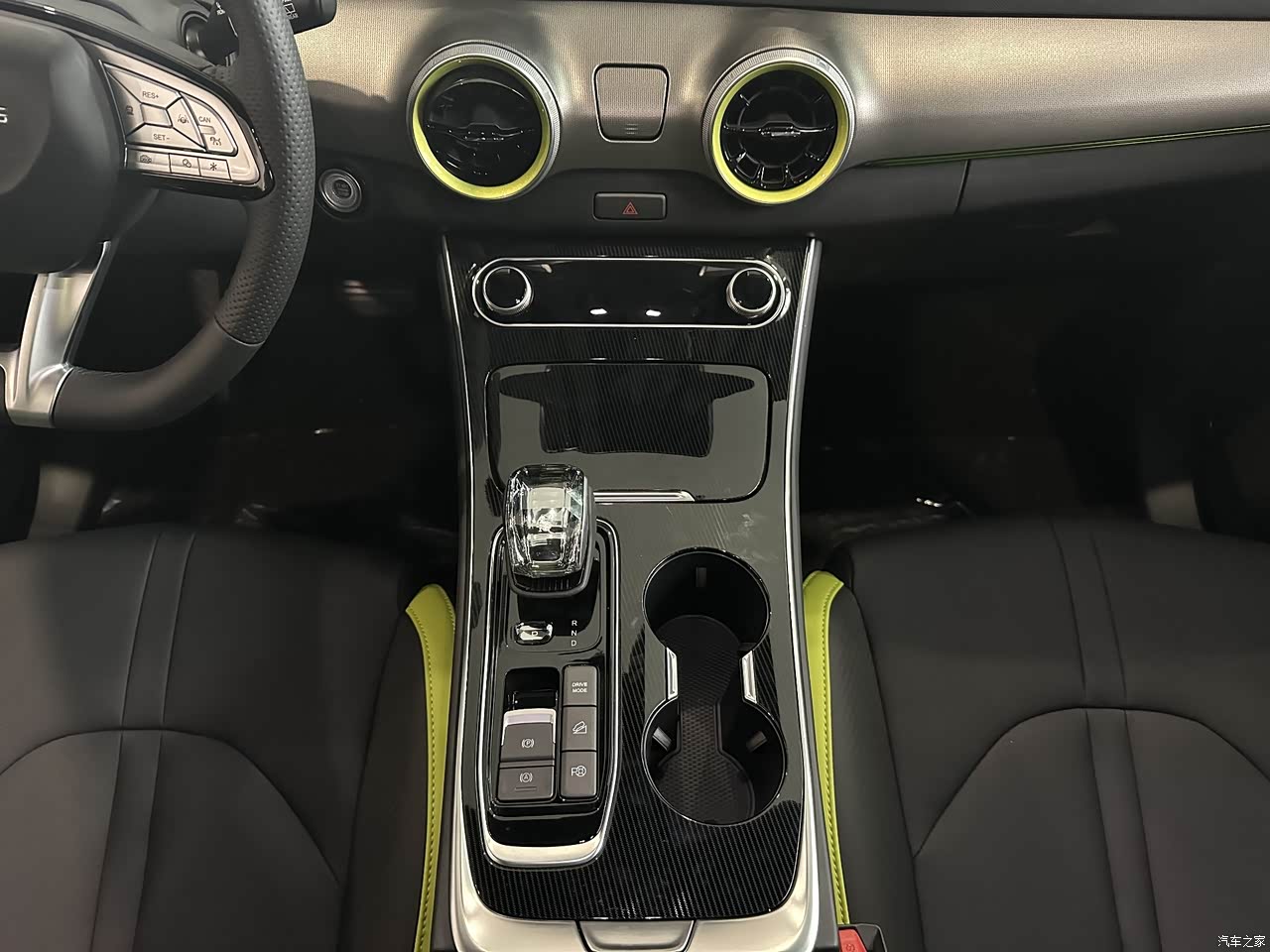 对于一款纯电车,风行雷霆的内饰设计布局只能算中规中矩,但是我确实很喜欢,以熏黑色调为主的内饰加以荧光绿装饰条以及银色饰板进行点缀。炮筒状的四个空调出口均匀分布在中控台,表面荧光绿装饰条,营造出青春的乘坐环境。座椅的三角形设计,尤其是前排两个座椅造型非常的运动时尚,并且有LOGO ,营造出的运动氛围是非常不错的。只是填充物比较僵硬,坐久了可能有些吃力。