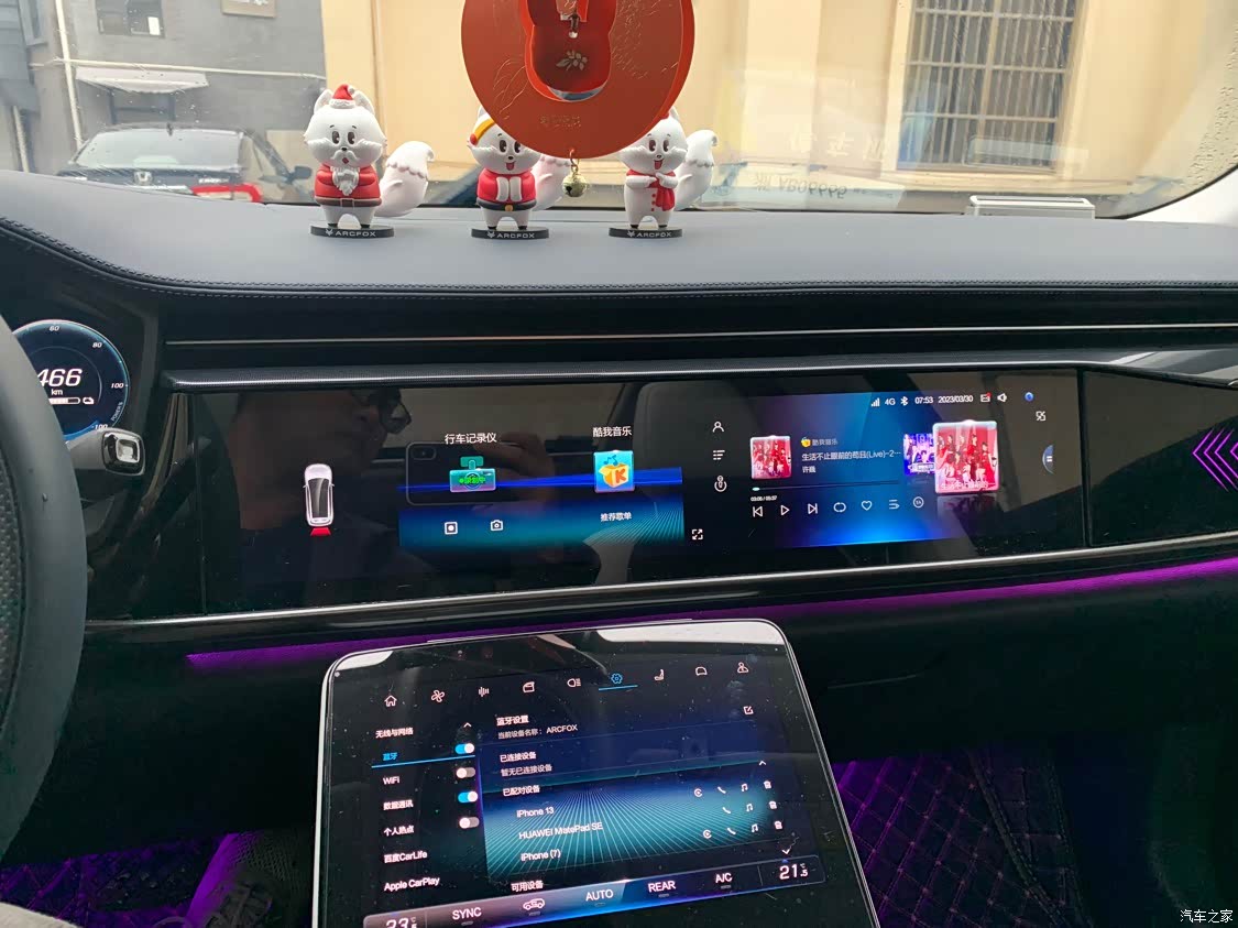如果说不满意的地方,那就是车内中控4 K "带鱼屏",看电影的时候感觉位置太低,对于我一米八几的大个子来说,看久了颈椎会很酸,如果能调节屏幕高度就更好了;还有一点就是车内系统远程升级,如果能够安装更多的软件也好,这样可以在车内打游戏或K歌,使用起来会更爽。车机系统比较拉跨,奇怪为什么和华为合作却不用华为的鸿蒙车机系统,好在用苹果手机的CarPlay和华为的Hicar投屏,还有百度的Carlife投屏,极大的弥补了车机系统的不足。在高速上的辅助驾驶有时会岀现"画龙"的现象,所以安全还是靠自己去掌控,我在此也呼吁极狐的软件工程师们多去借鉴一下友商的车机系统,毕竟这些问题通过升级系统都可以得到妥善解决!