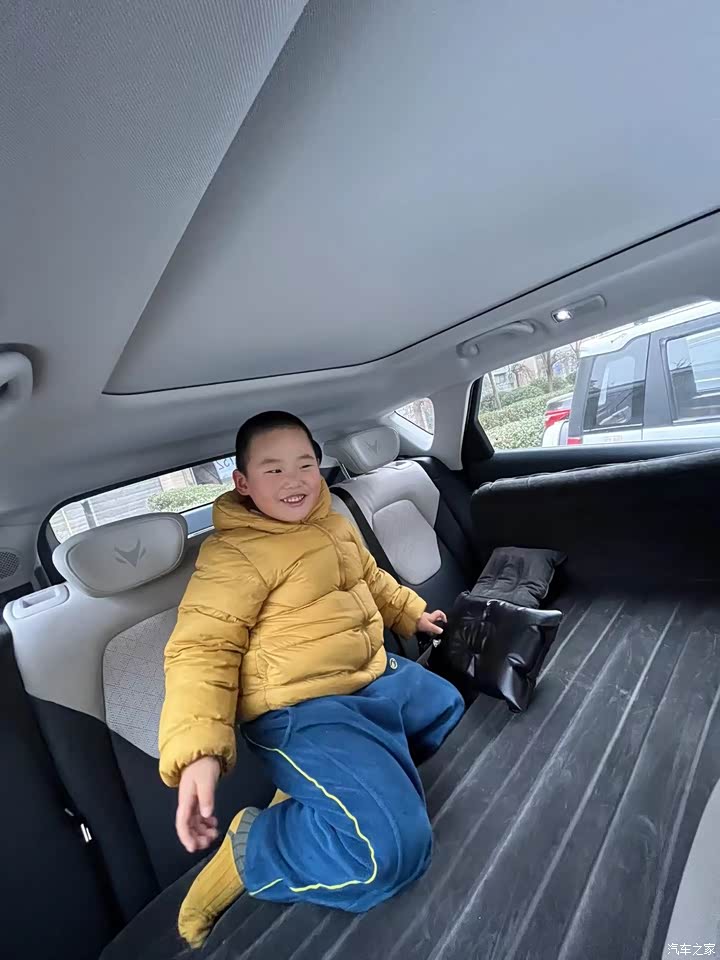 通过2米9的超长轴距,使得后排空问很充裕,我平时在后排放个气垫床,累的时候躺下休息很方便。
