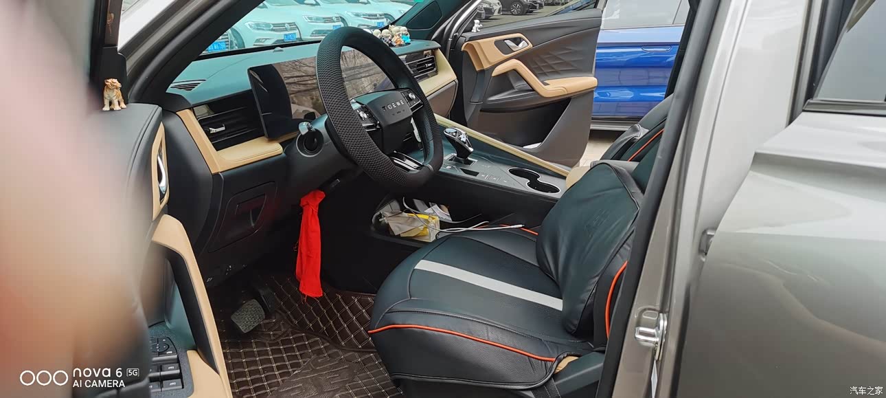 车身的颜色是丝绒银,黑色的真皮方向盘,棕色仿皮的座椅,与车身的颜色搭配。增加了整个车的合力,软包装了整个车的内身,