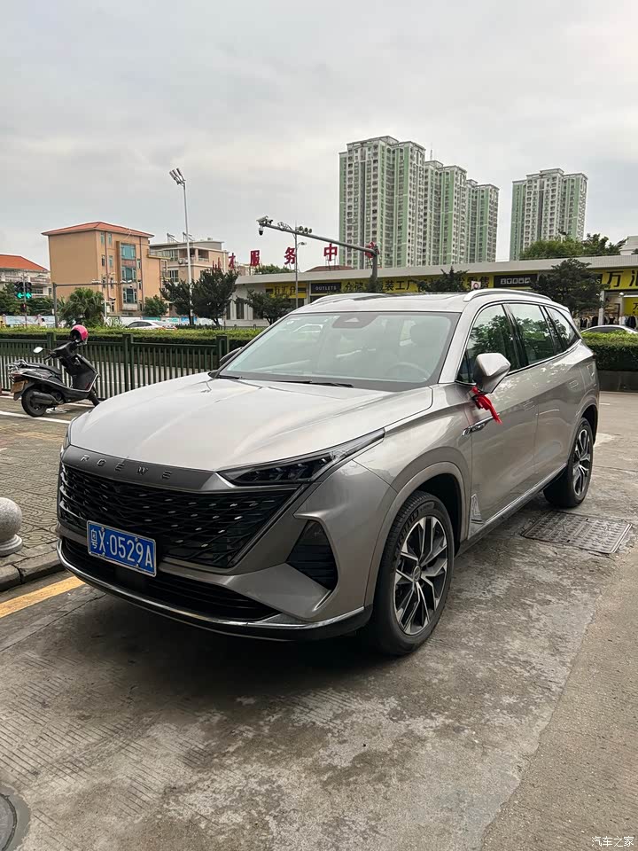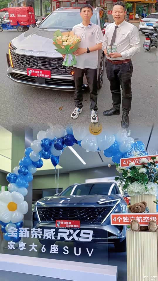 今天正式上牌了!用临牌开了五百多公里,整体感觉如下: 1,外观:荣威RX9大嘴式的进气格栅,扁平化的大灯组的设计,尺寸长宽高分别为4983/1967/1786mm,轴距2915mm。侧面的造型要比前脸更加耐看,隐藏式门把手的设计,整体有肌肉感。比我置换的那台开了6年的本田XRV大了一大圈,停车我都小心翼翼的左看右看生怕碰花了!就差一张新手上路了! 电动尾门,尾灯的设计和中网一样为倒梯形的设计,我感觉算简洁吧! 20寸米胖子轮胎大气! 2,内饰空间 荣威RX9的三联屏的尺寸总和为47英寸,全液晶设计优秀,中控台一块木纹饰板,搭配磨砂银色的空调按键,加上半开启全景天窗,氛围灯,整体内饰的质感非常不错。最新芯片加语音智能系统用起来很方便,手机app能远程操控,储物空间设计合理. 航空电动真皮座椅设计,副驾还有老板键,加热通风和石墨烯理疗,2/2/2的设计可以保证后排两座的舒适性,也让乘客进出第三排更加方便,国王模式和三排一键入座很方便! 第三排座椅填充物和座椅的大小都不错,颜色感觉用久了会不会不耐脏,还有它也是所有三排座SUV的缺点,就是坐垫的高度偏矮,对于腿部的支撑力一般。 后备箱在常规状态下跟同价位车型中表现不错,第三排座椅能够3节调整实现放平,放平之后空间的拓展性和灵活性尚可。 3,动力 动力方面,采用了 一台2.0T 发动机+9AT的动力组合,L2智能辅助驾驶,转向轻盈,刹车偏软, 9AT变速箱则是与采埃孚进行合作,感觉不出什么顿挫,开起来很顺,悬架过坎路感不错,风躁路躁控制得很好,用的前排双层玻璃,油耗8.6l左右,可以加92#油,后期继续观察. 4s店送了贴膜还有地毯和一次保养. 落地22万左右!提车当天还有交接活动(送了香水和鲜花仪式感还不错!)