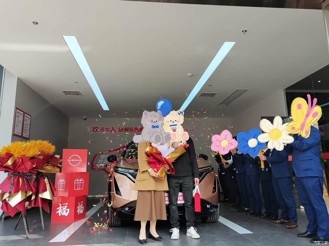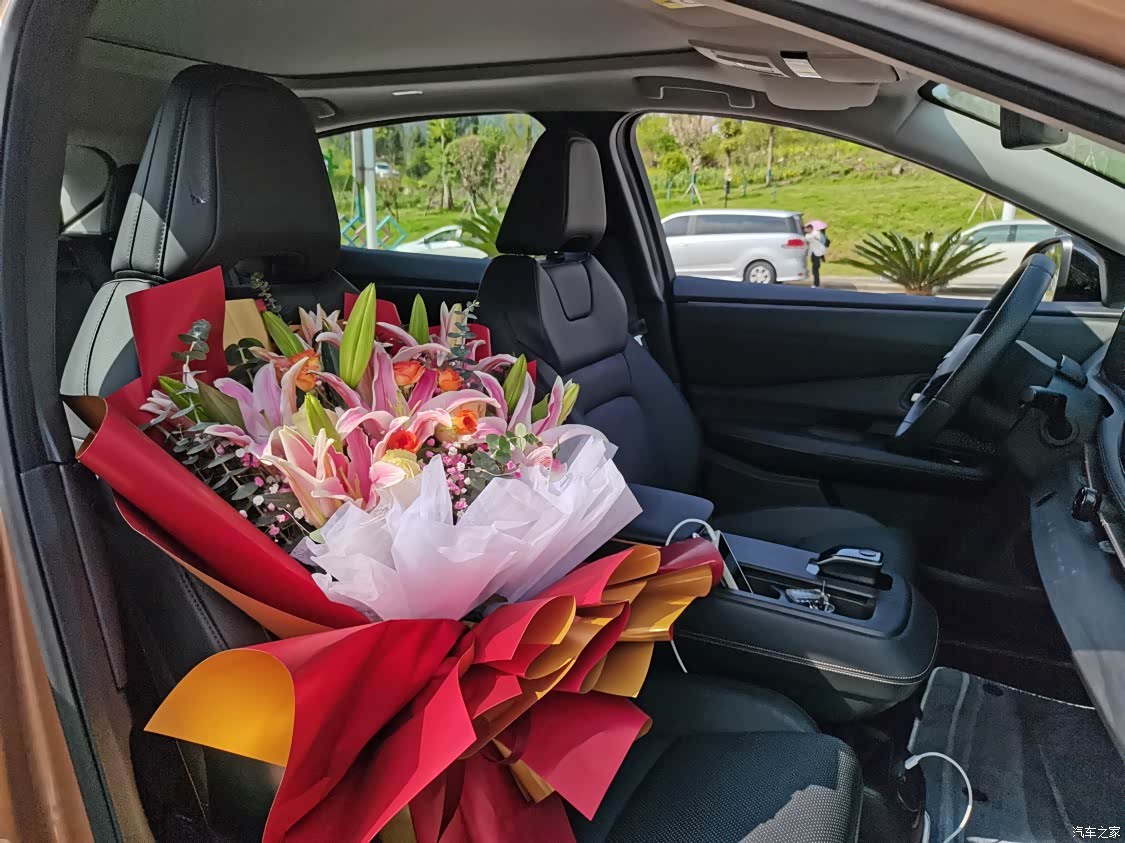 提车时的仪式感还是满满的,4S店送了一大束花和一份小礼物,