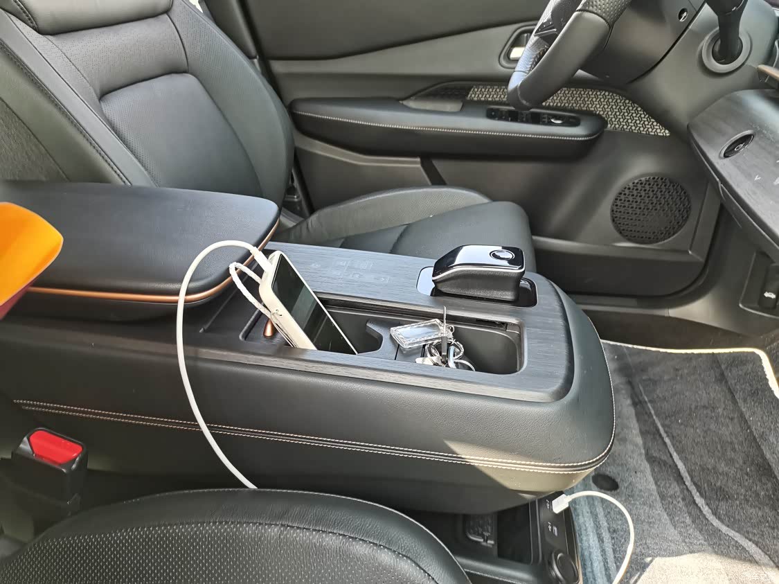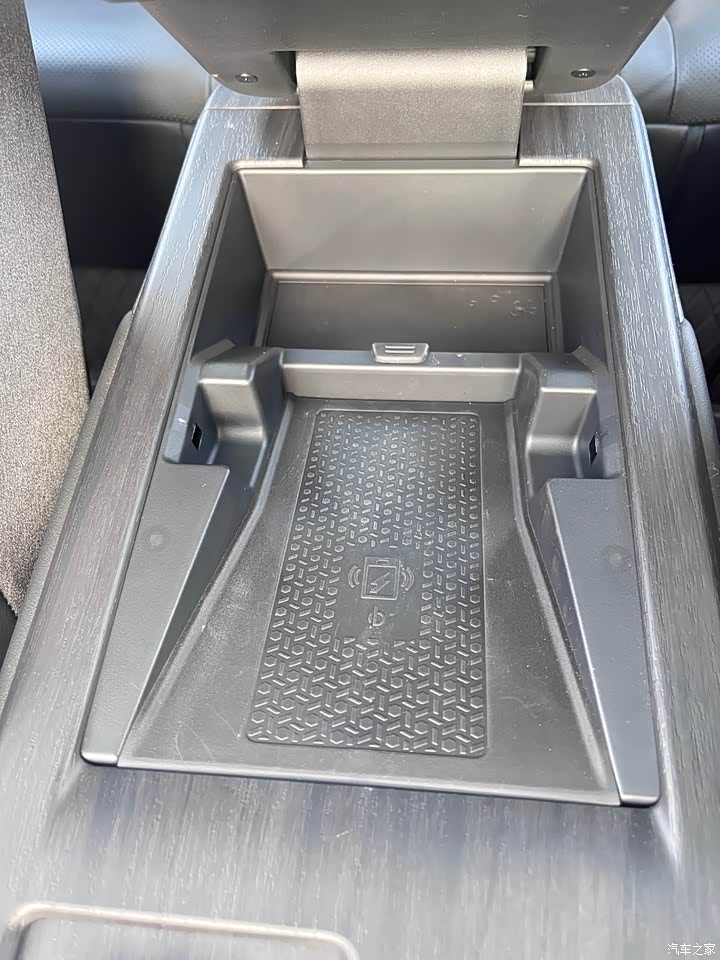 中控扶手台我觉得是很巧妙的设计,可以前后移动10几公分,移动到最后前面都可以拉通,扶手台也配了手机无线充电很方便。
