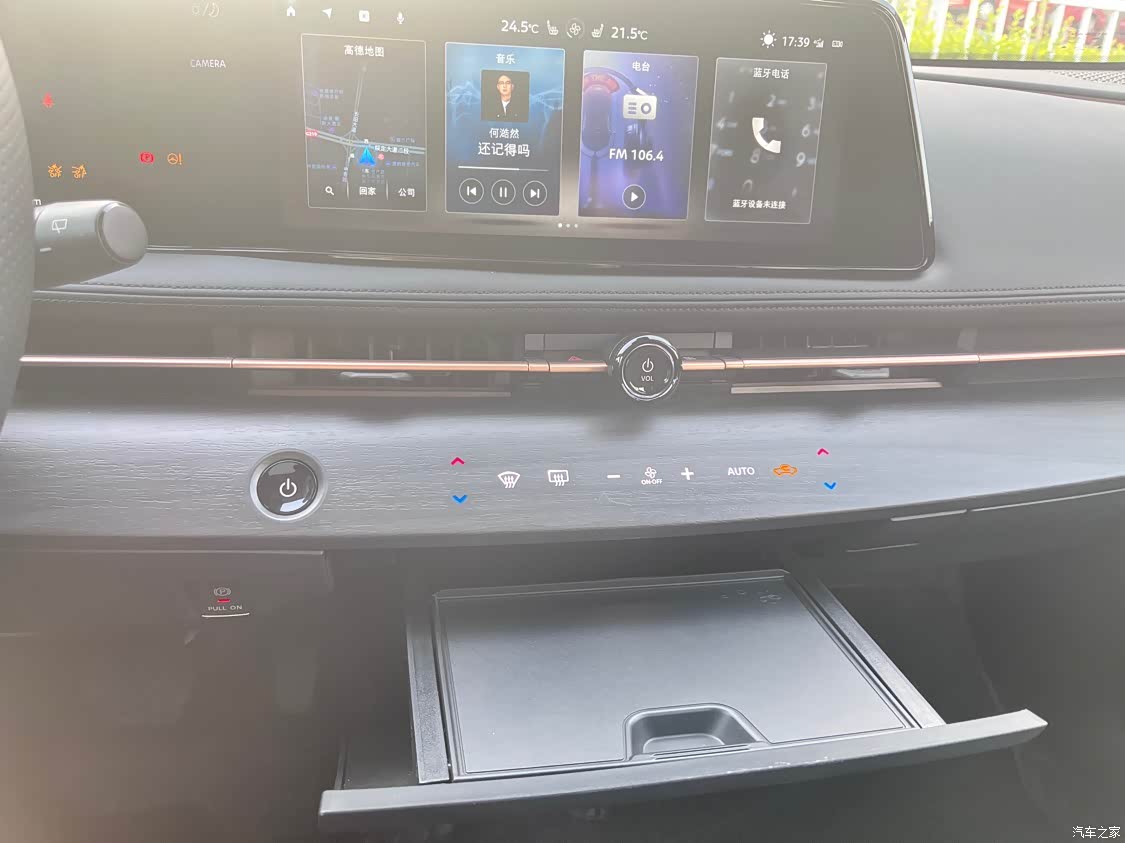 最喜欢的也是这款车的内饰,两个屏幕很大,功能很多,AR导航用起来挺方便的,还可以语音控制,最让我喜欢的是中控扶手台是可以前后移动的,中间还有个隐藏的小桌板,空间利用的很好,同时调空调的面板按起来很高级。