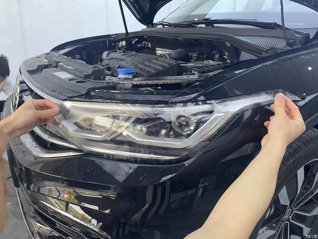 LED矩阵大灯,怎一个帅字了得。这是贴车衣大灯的照片,很犀利吧!