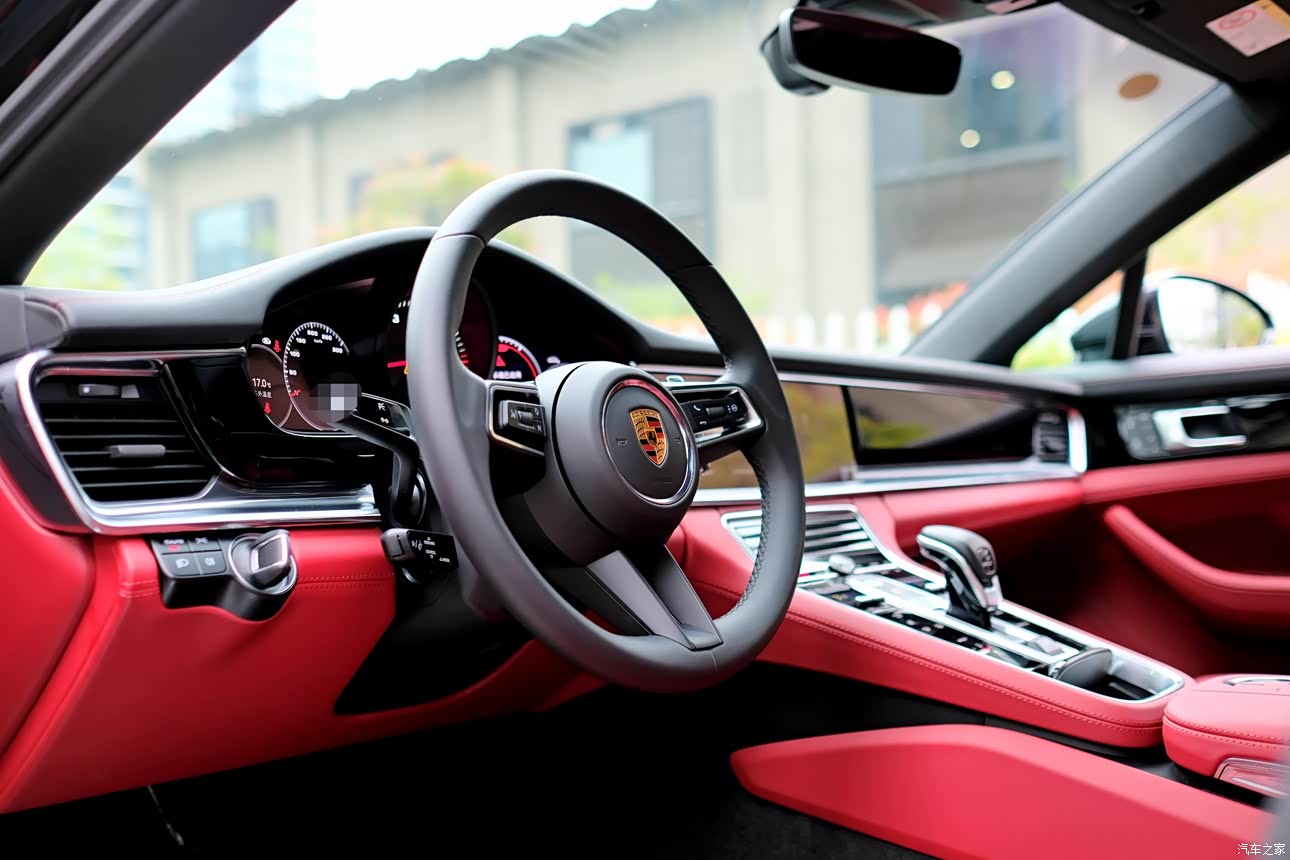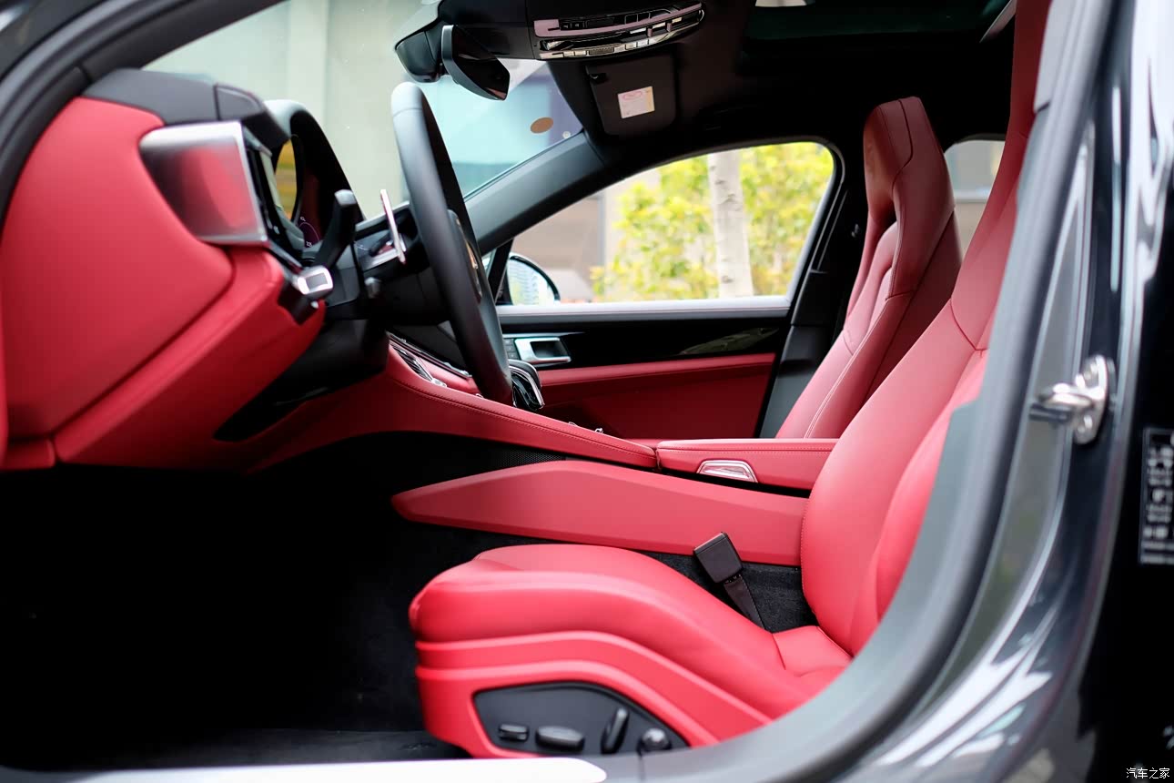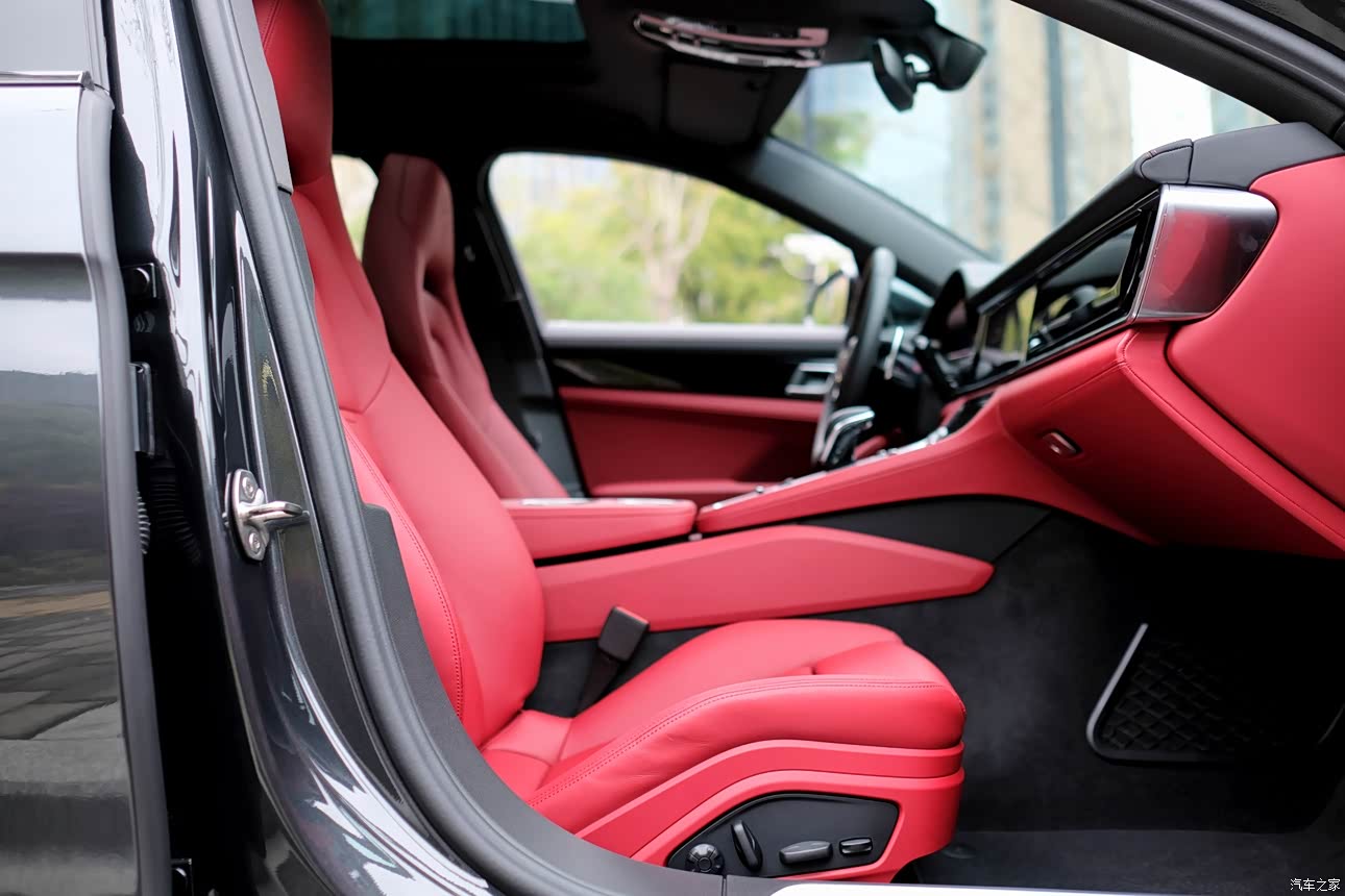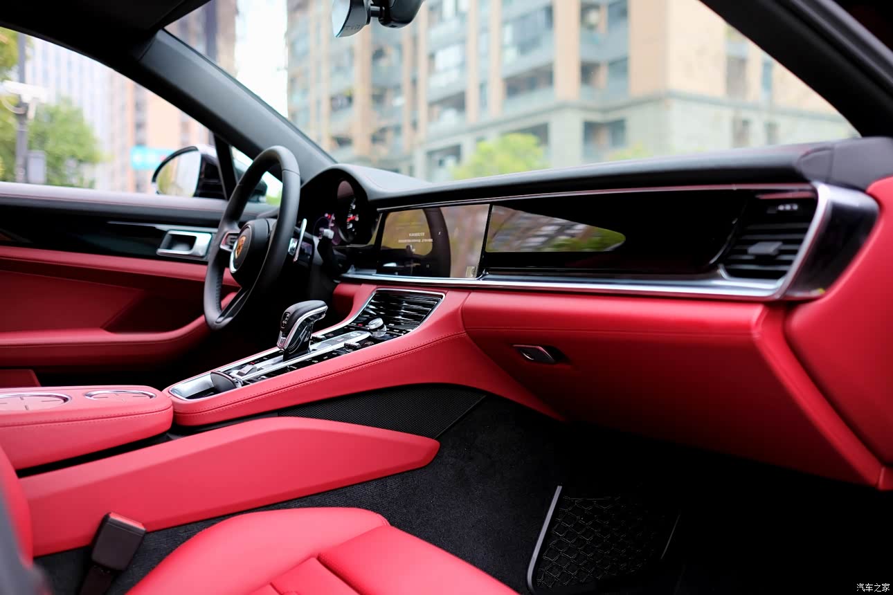 黑色车身大气运动,而红色内饰则是热情如火,大概每一个保时捷车主心中都有驰骋的热血吧。 真皮座椅质感十足,坐起来来包裹性也挺不错,电动调节十分方便,就是座椅通风还需要选装。 对音响没什么研究,10个喇叭听起来好像也挺好。