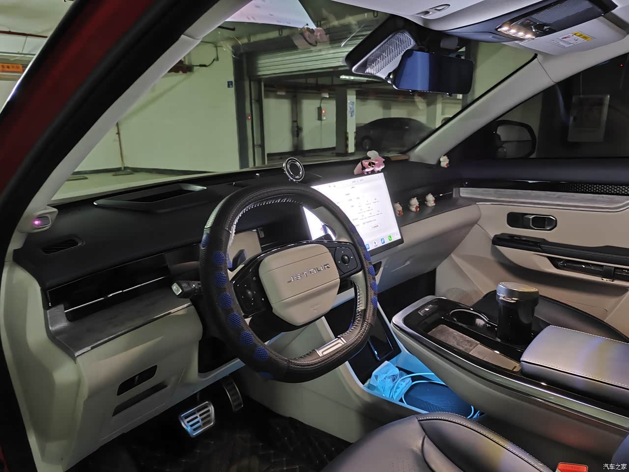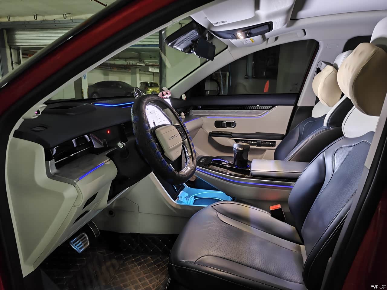 真皮运动座椅,女王座驾,通风加热还带按摩,蓝白搭配,皮质包裹加碳纤维板饰,你说呢