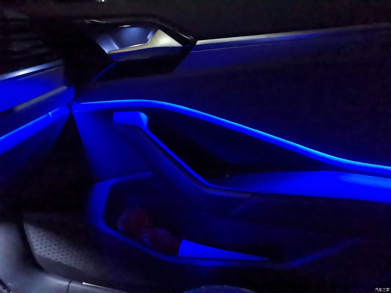 车内氛围灯总共有12种颜色,我最喜欢的颜色还是这个蓝色的,非常的有运动气息,开车门还有迎宾灯,一个一汽大众速腾的logo,非常的高大上,所以说一汽大众的品质还是非常好的,对比其品牌都没有氛围灯。