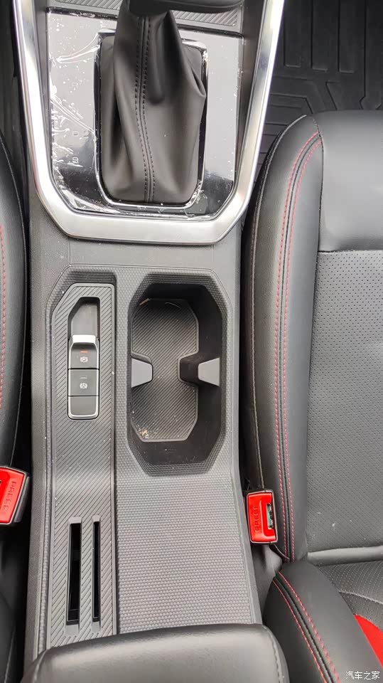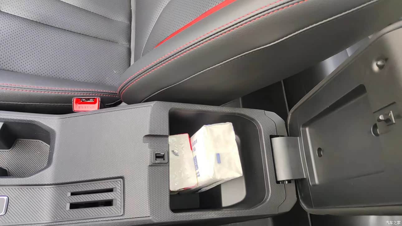 隔断板前面可以放手机并进行充电,中间有两个水杯架子,平时也可以放一些杂物,旁边还有两个卡槽,不过有点小,也配备扶手箱里面空间倒不是很大,平时我就放一些纸抽。