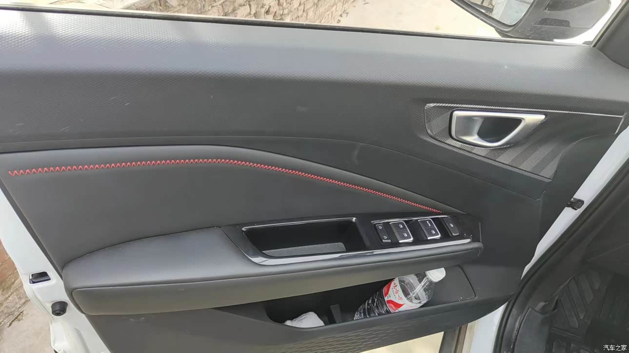 刚买的时候有股异味,我就开车窗跑了几次感觉就变淡了很多,内饰还算凑合,有部分双缝线软包材质,不过整体的塑料感还是很明显的。