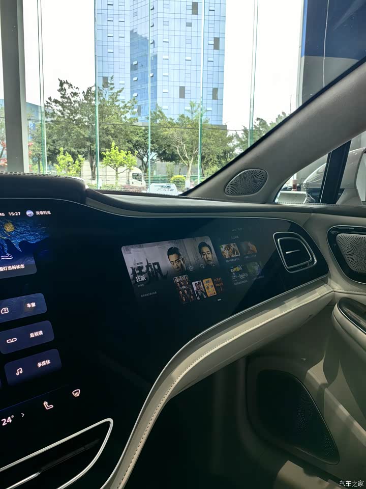 给三连屏打好评,看着很舒服,流畅~第二排娱乐屏也很亮点 少一星是因为那个顶棚翻毛皮,帅气的电吸门都是选配。虽然现在有10000元选装金,但是都想要啊!!!