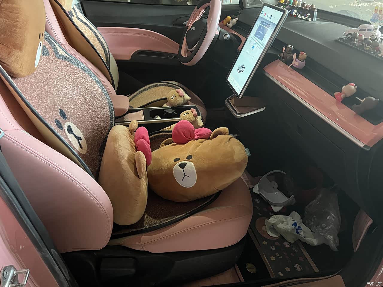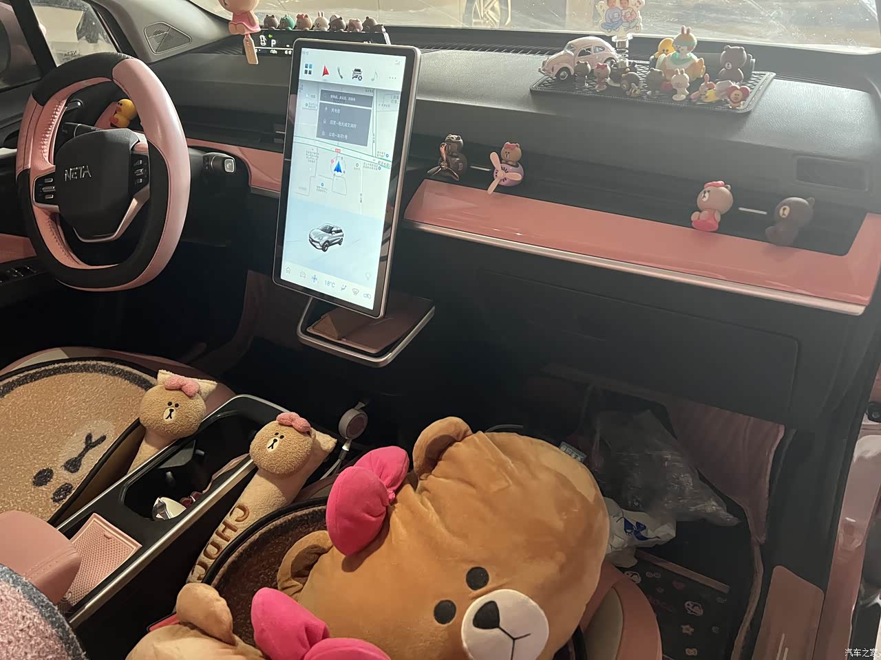 外观我是真的很喜欢,真的太懂我的心了。本来粉嫩的颜色就算不做装饰开出去也很亮眼的,但是我自己买了贴纸做了DIY,和孩子一起贴的,孩子也很喜欢,让这个车看起来更可爱了。每次开车去接她的时候,就大大的满足了她的虚荣心,她班上的小女生都很羡慕她妈妈开这么一款可爱粉嫩的车来接她,我开个几万块的车比人家奔弛宝马还受欢迎。