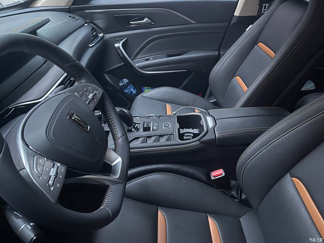 内饰做工还算不错,对得起这个价位,自带氛围灯,中控两个大屏幕清晰度也可以,多个主题可供选择,车内基本上没有异味,而且大部分采用软性材质包裹,档位设计合理,就是电子手刹的位置设计一开始不太适应。