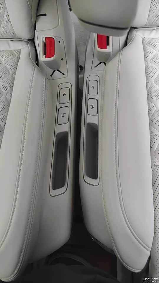 浅白色的内饰,看起来很干净整洁,不过就是不耐脏,仿皮的座椅,主副驾的乘坐起来特别舒服,座椅的包裹感很强,扶手箱软革材质比老款精致了不少。