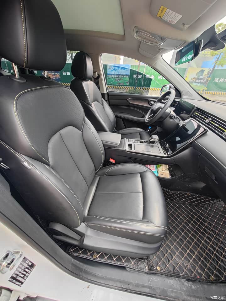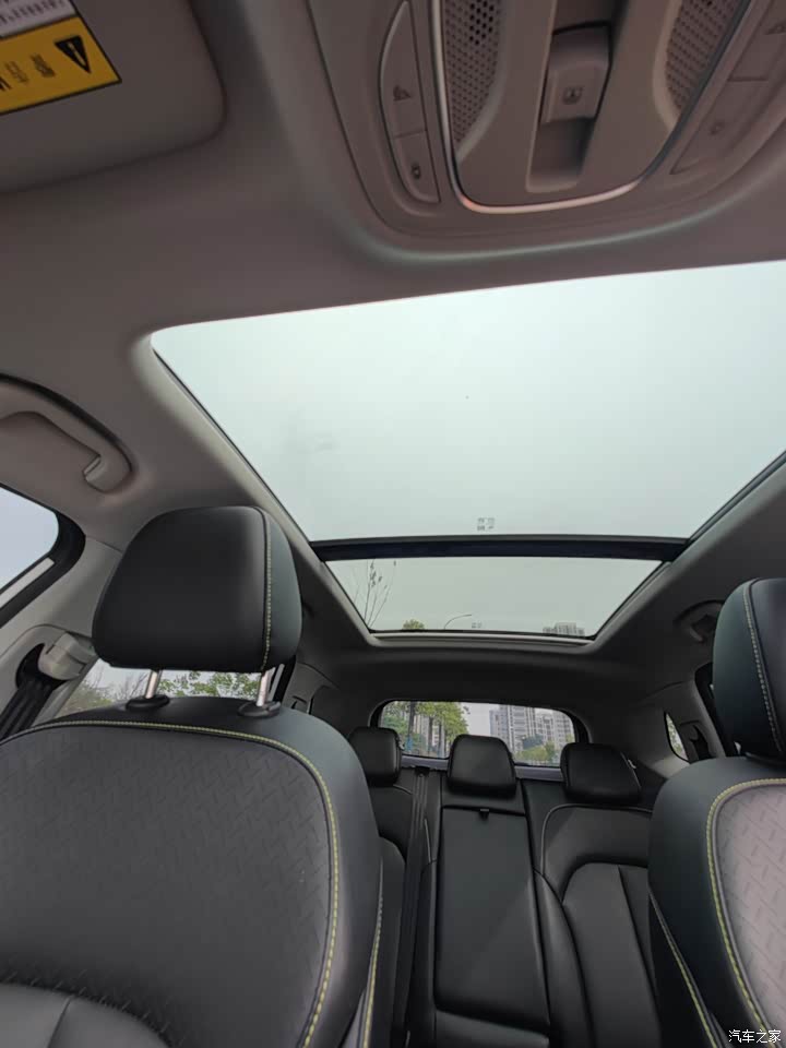 内饰很简洁,中控看着很规整,不凌乱,一条黄色的线条贯穿左右,我觉得有点突兀,要是没有这个就更完美了。座椅是黑色的有点不耐脏,有一点灰就很明显。而且没得其他颜色可选,刚开始买回来有一点味道,过一段时间就好很多了。用料这些还行,常用部位都用的软质包覆。最喜欢这个全景大天窗了,只要不是夏天,每次出门都要打开遮阳帘,车内显得更宽敞明亮。