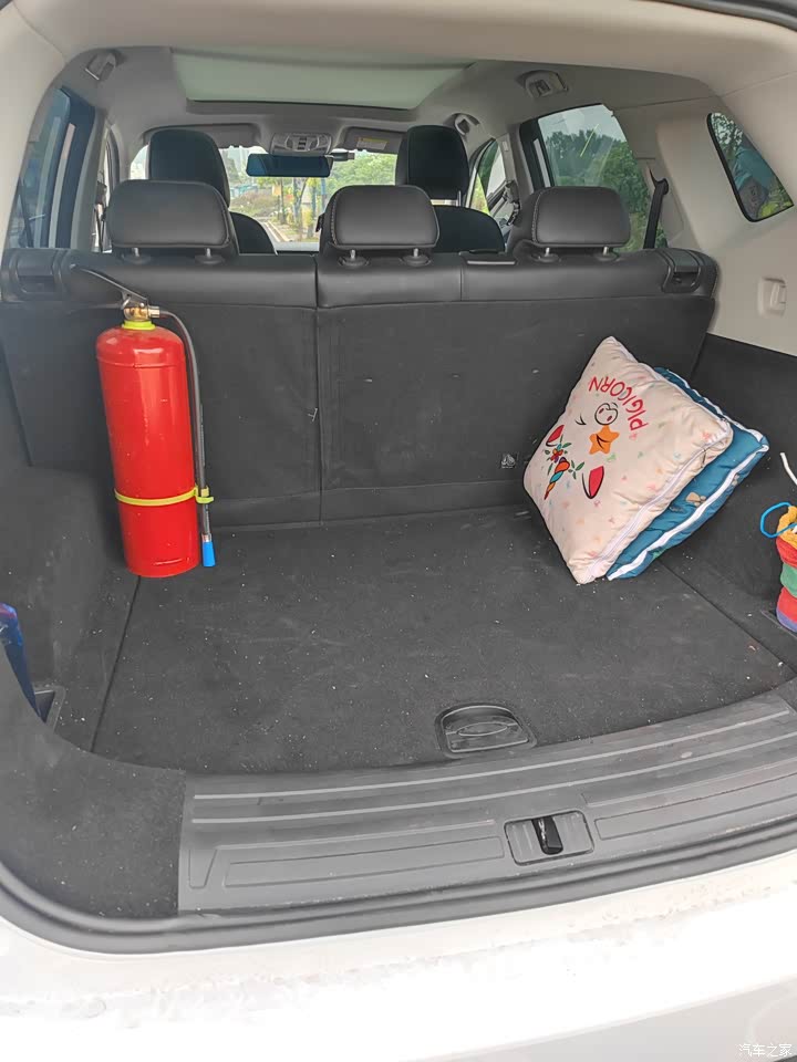 后备箱容积不算很大,好在平时不怎么拉东西,过年过节的时候可能会装多一点,而且后排座椅可以放倒。放倒后空间就要大很多,而且是平整的