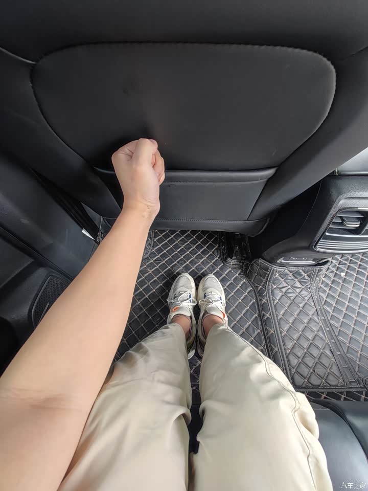 前排调整到我的坐姿后,后排空间对于我的家人来说还是很宽敞的,就算做3个人也不算拥挤,而且平时基本上只有我老婆和孩子,孩子在后面完全可以自由活动,中间也只有一个很小很小的凸起,完全可以忽略,基本上算平整。