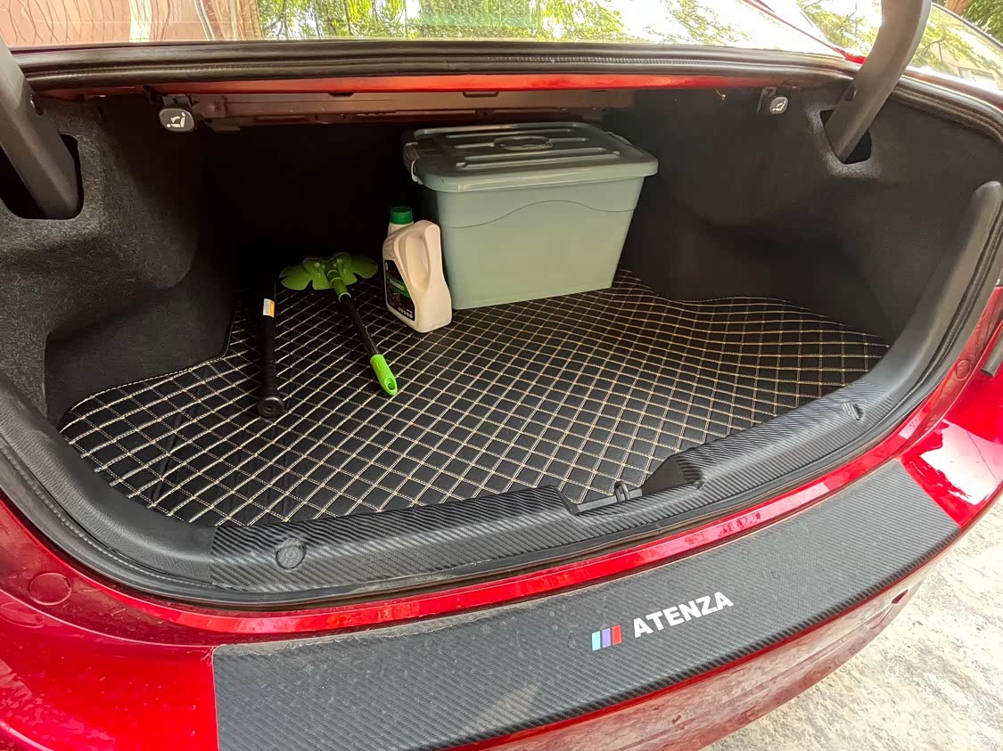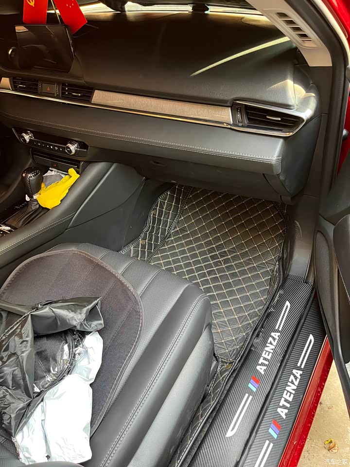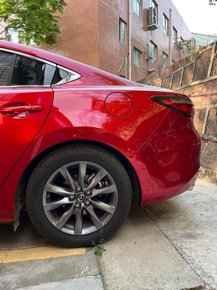 如图,我的上一款车是2016款昂克赛拉,现在已经卖了,那个车虽然是豪华款带拨片的那种,但是自动大灯、离车自动锁车木有,苹果的play也无法连上,不知道怎么的,车窗一键升降也没有。现在这个阿特兹,虽然比不上大家的2.5的,我也知足了,有时候就是差那点钱,就是卡那里上不去了,另外就是不喜欢扁平胎,噪音太大了。这个胎看着也挺大的。