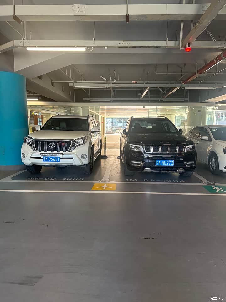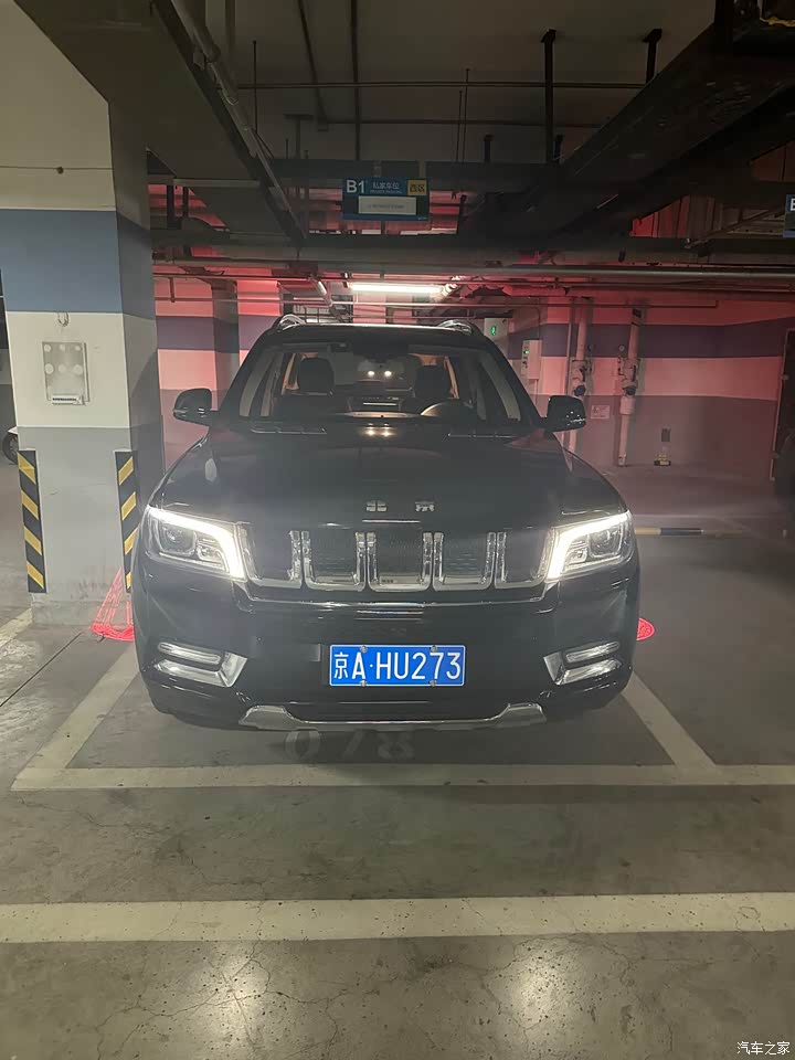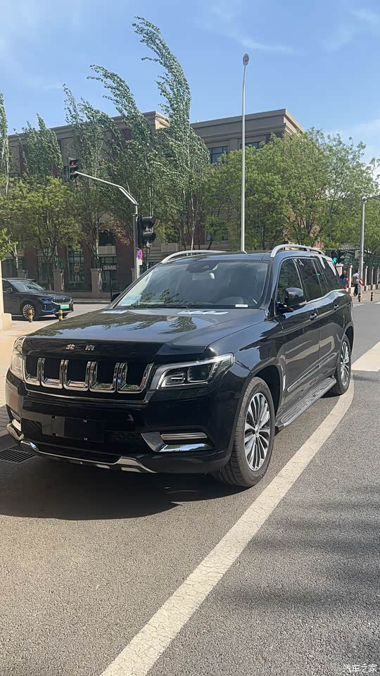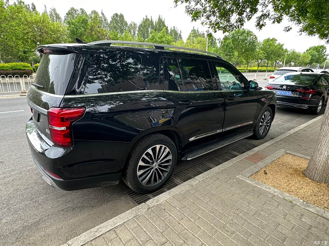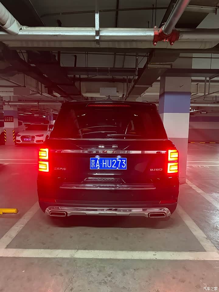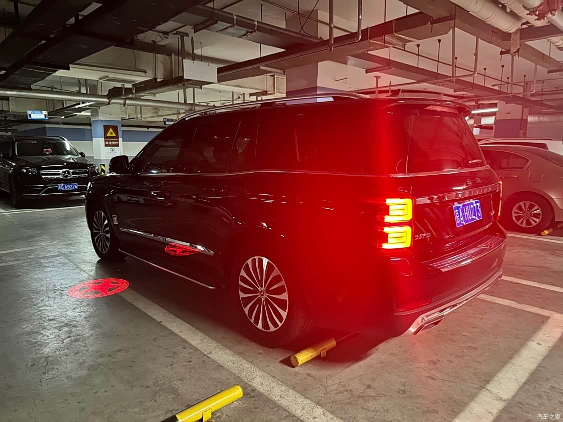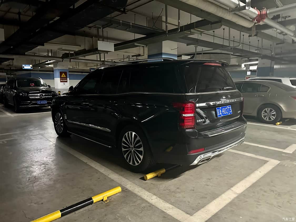 车子外观大气沉稳,车头其实比gls看着低调稳重,虽然是gls换壳,但北汽的设计师应该有认真的的设计过这个车头,略显优雅,车尾的大灯是方块形状,比较简练端正,不像现在大部分车都是贯穿式尾灯。 上完牌跟一台霸道停一起,比它整整大了一圈,真的太大了!