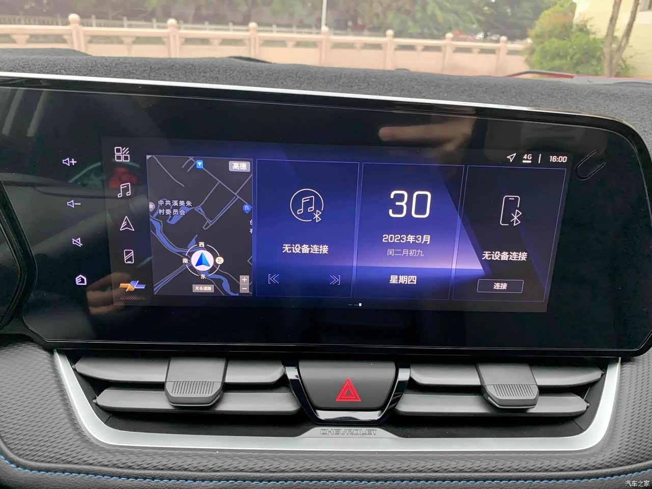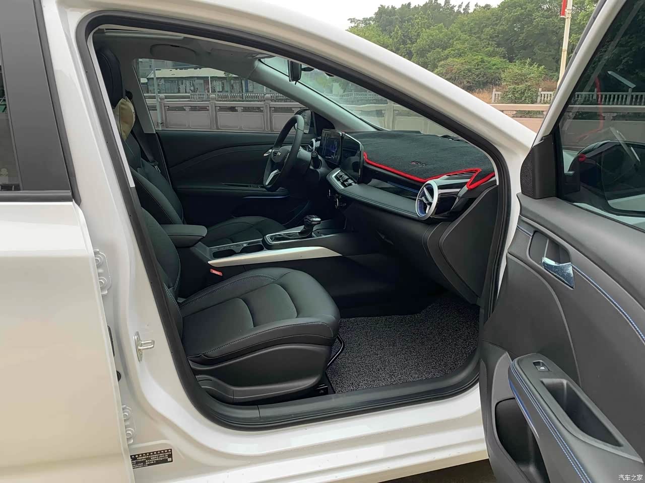 内饰还是比较高档的,中控台做了独特的切角线条设计,和外观呼应,灵动感和时尚感更足。还有一些蓝色的碰撞在里面,显得很活泼。屏幕看着也是高大上的,显示细腻。整个内饰的用料也十分用心了,虽然也有塑料感,但是不强。