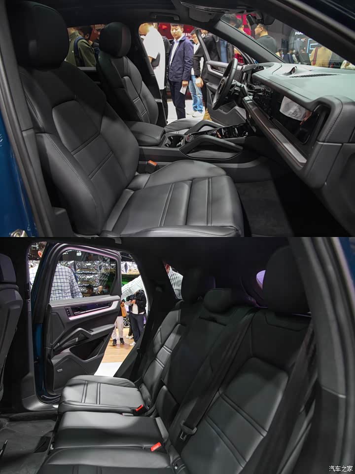 卡宴这一代改款在配置上还是下了挺大功夫的,容我细数: 1、上一代的机械仪表升级了曲面屏的液晶仪表,副驾还可以选装娱乐屏幕,加上中控屏,一共三块大屏幕看起来真的很爽,奔驰GLE的两块屏幕远不及新款卡宴的观感,也难怪大家说保时捷卡宴是“把妹神器”,哪个妹子看了这内饰不眼花缭乱的; 2、车大灯从单透镜升级成了四透镜,官方称照射距离最远能达到600米。一里多地啊,我滴个乖乖,展馆里看车我只能凭想象它的实际效果,那不得跟高速上的防疲劳射灯一样了? 3、和奔驰GLE一样,新款卡宴主驾驶也可以选装抬头显示,不过面积更大了一点、系统也进行了优化; 4、网上的旧款卡宴车主不是常吐槽底盘硬吗?你们的声音厂家听到啦,新款卡宴全系标配了带有双腔双阀技术的自适应空气悬架系统,也就是说新款卡宴在遇到颠簸路段时舒适度会更高。不过我还没有进行动态体验,这只是对于更新的一种猜测,具体还要在它新车进店后进行试驾体验。