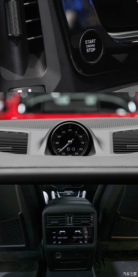 新款卡宴的内饰是本次变化最值得讨论的一个方面。全新的设计语言已经是22款的Taycan所展示过的,包括: 1、新增一键启动按钮,安置在方向盘左前侧; 2、换挡拨杆位置迁移到方向盘右侧,紧挨着中控的左沿; 3、三块大屏充分体现科技感,保时捷这次是把新能源汽车的内饰设计移到了一辆纯油车型上,这是一种很新的尝试,也符合所谓的电控时代汽车设计的演变趋势; 4、有一点新款卡宴做的非常好,就是保留了实体的空调控制按钮,这绝对是开车行进中最方便、直接和安全的调整方式,个人认为是强于触屏操作的。奔驰GLE也是保留了空调的实体按钮,更加说明了它的实用性。