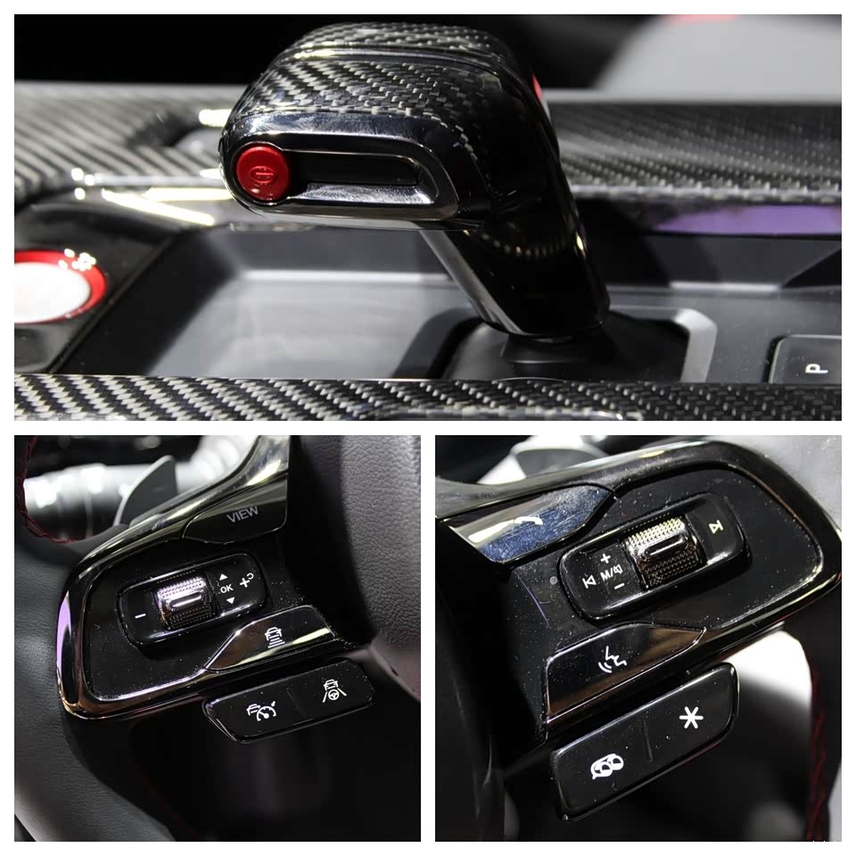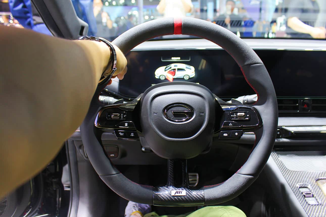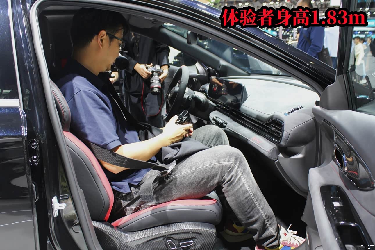 内饰方面比较抢眼的方面就是前排座椅,一体式靠背颈部的镂空设计不难看出是按照赛车座椅的设计,而且坐垫中间的前部也有卡扣的设计,这是双肩安全带的设计哈哈,我感觉这车就应该设计两个安全带这才能有与众不同的感觉,另外两块超级大连屏已经属于现在常规设计了,没有这个屏幕现在都不好意思生产了。 那内饰的门板方向盘以及一些操控按键也都有性能车的一些体现,比如颜色的搭配,碳纤维的加持以及大量的超纤皮的覆盖,都是性能车的常规标配。 内饰总结:内饰不同外观,并没有做的那么夸张,这也算国产车的一个成功突破,目前主流车型真的是越来越简单了。另外传祺这次真的下血本了,前后门的门槛处都用的碳纤维。
