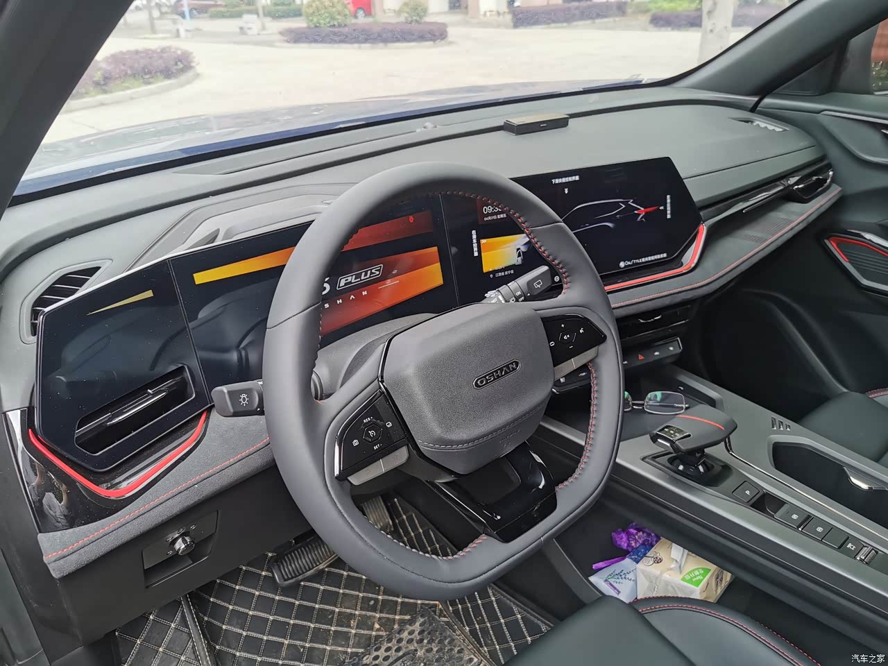这是我的第二辆汽车,第一辆是合资的标致308,开了有9年了,但是随着时代的发展,那辆车越发显得过时了,科技感几乎没有。我自己本人是个赶新鲜的人,所以换车势在必行。决定选购一辆suv,于是从2月份开始关注汽车行情,加之本人是妥妥的爱国人士一枚,国产车很自然的进入我的第一选择。目前国产车口碑越来越好,智能化配置又高,动力充足,可选的suv多,简直神仙打架🤭。 去了几个自主品牌的4s店,试看了好几款车型,都非常惊讶,没想到如今的国产车居然发展的这么快,加之内卷严重,10万价位的国产suv竞争激烈,每一款都是那么的吸引人,马上让我有了选择纠结症。 先是看了吉利的缤越cool,总体外观也不错,配置也很齐全,但是就是整体尺寸小了点,pass。然后去看了博越L,这车各方面都很满意,配置高,但是试听了选装燕飞利仕音响后,有点失望,这个音效不能满意,关键还是要花3000元选装才有的,不值得,因为开车个人觉得最大的娱乐应该就是听歌吧,音效必须好。还有长度达到4670mm,又偏大了点,平常上下班感觉有点不大适合,我本人的体型也偏瘦。 接下来去看长安。开始是想比较unit和cs55plus,两款也都看了实车,都感觉也挺好的:unit设计大胆另类,里面内饰,配置都很豪华,就是感觉车身太低了,不符合我对suv的要求;而cs55plus也很不错,大小尺寸,配置都是我想要的,完全满足,唯一就是方向盘是上下扁平类赛车款的,这个我确实接受不了,有点遗憾。也只能pass。 最后去了长安欧尚,一进店,就直奔在手机里看过的x5plus,第一眼就让我停住了脚步,比在图片里看到的还要好看,车型年轻运动,车长4540mm,高也有1610,大小尺寸不大不小,奈斯!符合我的身高体型😘。坐进车内,无论是前排还是后排,空间都很好,轴距也达到2710,很宽裕!再摸摸用料材质,几乎都是搪塑,还有翻毛皮,手感不错,没有硬塑料的廉价感,做工相当可以。当然最吸引我的还是传说中的那三连屏,果然够科技,够美观,够实用。体验后各项配置都满意,操控方便,尤其语音操控完全没有迟缓,随叫随到,各项指令反应很迅速,完全出乎我的意料。以后能动口的尽量可以不动手了啦。还有,空调保留了实体按键,这一点我要点赞,大家懂得。 最后当然要试听音响了,索尼品牌我是有信仰的,家里的电视,游戏机(ps5,ps4,ps3—1),小电子产品全是索尼的。音乐响起,果然对的住这个牌子,低音沉厚,人声清晰,动感十足,高音也不尖锐赤耳,整体效果再次让我满意。 经过一阵体验和触摸,操控,基本没什么缺点,心里面也就有了答案。就你了!没错,欧尚x5plus,就是你! 因为我要的颜色是星际灰,当时店里没有这个颜色,于是等了一个多星期后到货了,第一时间赶到店里,经过一天的时间,付款,验车,上牌,各项手续全部弄好,终于喜提爱车!当时优惠力度不大,仅仅只优惠了2000元,最终11.5万落地。这个价格如果是放到现在肯定是贵了很多,后面大家都知道了,各种优惠力度很大,不过我无所谓,先买先享受哈。我买的是领航版,智趣版对我而言没啥太大刚需,我是老司机嘛,车龄十年以上,什么巡迹倒车,自动刹车,车内健身,人脸识别什么的等等,都用不上,领航版的配置已经足够满足各种实际需求了。个人认为这个性价比更合适。 提车到今天已经有一个半月了,开了1300多公里,现在说说自己的感受吧。 1、油耗:我想这是大家最关心的吧,首先我开车主要是日常上下班,接送下小孩,偶尔出去游玩下,大多时间都是在县城内。刚开始500公里内油耗稍高,表显是8.0,我实测后是8.4的样子,现在跑了1300多,表显降到7.6,这个油耗我是很满意的。不知道其他车主是多少。 2、动力:这个动力还是很得劲的,切换到运动或是赛道模式,那感觉完全不一样,油门随踩随到,反应灵敏,加速超级爽快刺激,推背感强烈。不过安全和省油起见,我日常还是切换到经济模式,这个就平顺多了,没那么刚猛,但总体加速还是能满足的,超车起来还是很有信心的,只不过加速反应没前面那两个模式来的快,兼具了舒适性。 3、操控:没啥问题,方向盘轻重有自动控制,速度起来后,方向盘会稍显沉重,给人踏实感,停下来后,又变得比较轻了。相比我以前那辆308,方向盘很重,单手打盘有点费劲,现在的手感不要太好了。开始还有点担心国产的发动机变速箱组合没那么好,会有顿挫,实际开起来后不明显,总体变速都很顺滑。就是低速起步时有一个小问题,发动机会有时略响,转速会突然转到2000转以上,然后过了三四十码后转速会降下来,低速情况下有时转速不太稳定。 4、异响:其他还好,就是过了1000公里后,每次起步时好像偶尔会听到底盘传来一两声小的响声,有点像我们刚上床,压下去时,床底弹簧的那种声音。不过开起来后就没有了。总体没啥问题。 总之,车子开到现在,各方面都很满意,没啥缺点,让我对国产品牌有了更多重新认识,说实话如果不看车标,这车子还是可以有些档次的哈。这次用自己的行动来支持自主品牌,也希望国产车不负我们这些支持者。未来有路的地方就有国产车!