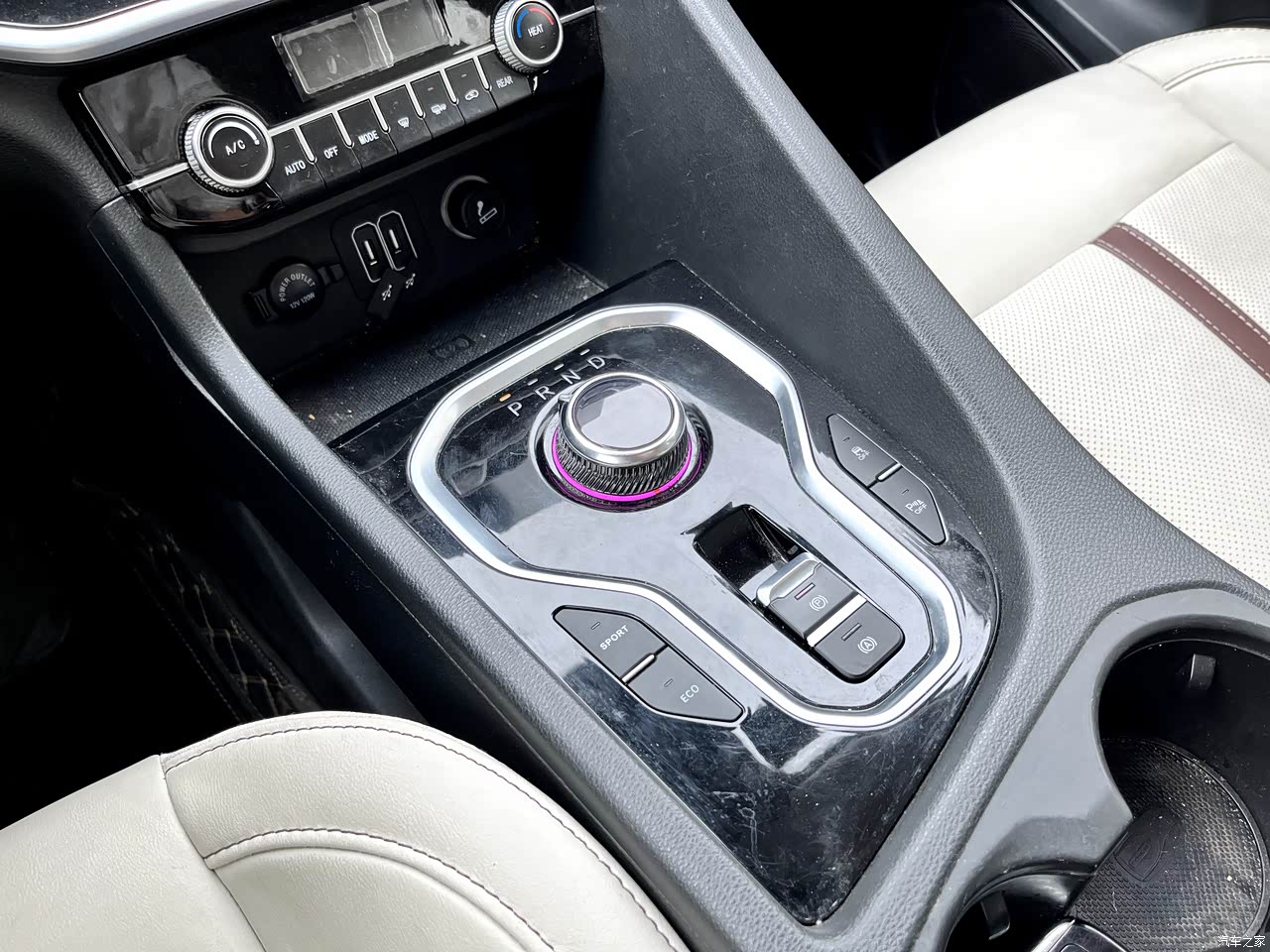 车内颜色搭配很漂亮,这是一个优点,非常有层次感。设计上,中控布局是对称的风格,中规中矩,但空调控制面板的设计有些突兀,旋钮和按键,再加上一块小屏,总觉得是很多年前的感觉,看着比较老气。