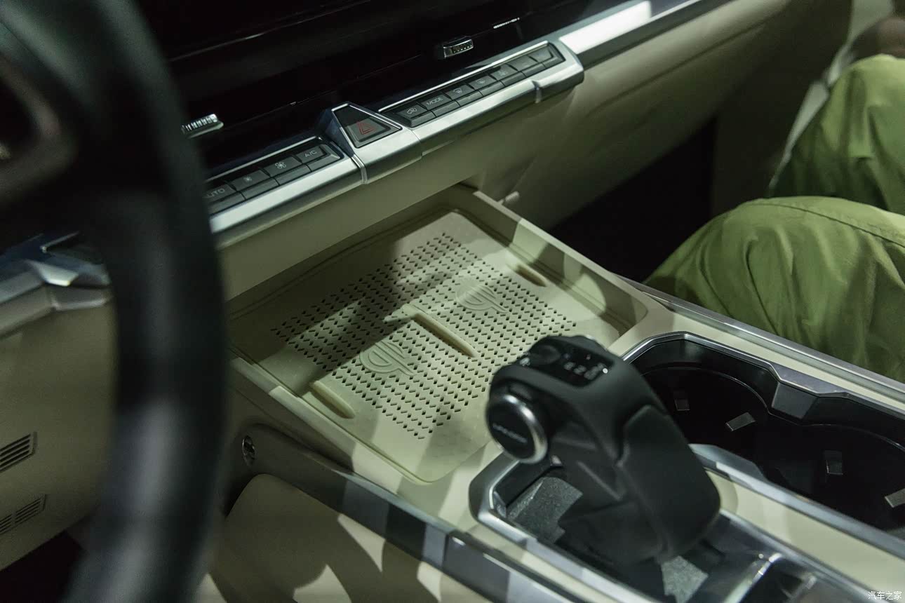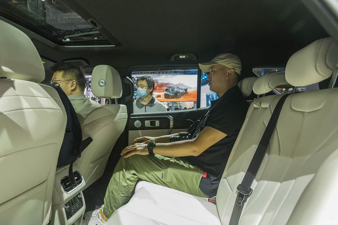 今天车内没有通电,很多功能体验不到,很遗憾,所以智能化能介绍的不多,说说我觉的不错的其他点。 1、 后备厢竟然和坦克500一样,提供了220V三角插座以及12V点烟器接口,也没缺少4个锚点挂钩,配置很齐全。 2、 车辆支持对外放电功能,这就大大拓展户外野营的可玩性 3、 天这台展车只有1个小天窗,我估计以后高配车型还是会用全景天窗的,但是我个人对硬派越野的全景天窗无感,建议高配车型也保留这种小天窗设计的选择。 其他的等以后体验过,我再来更新、补充!