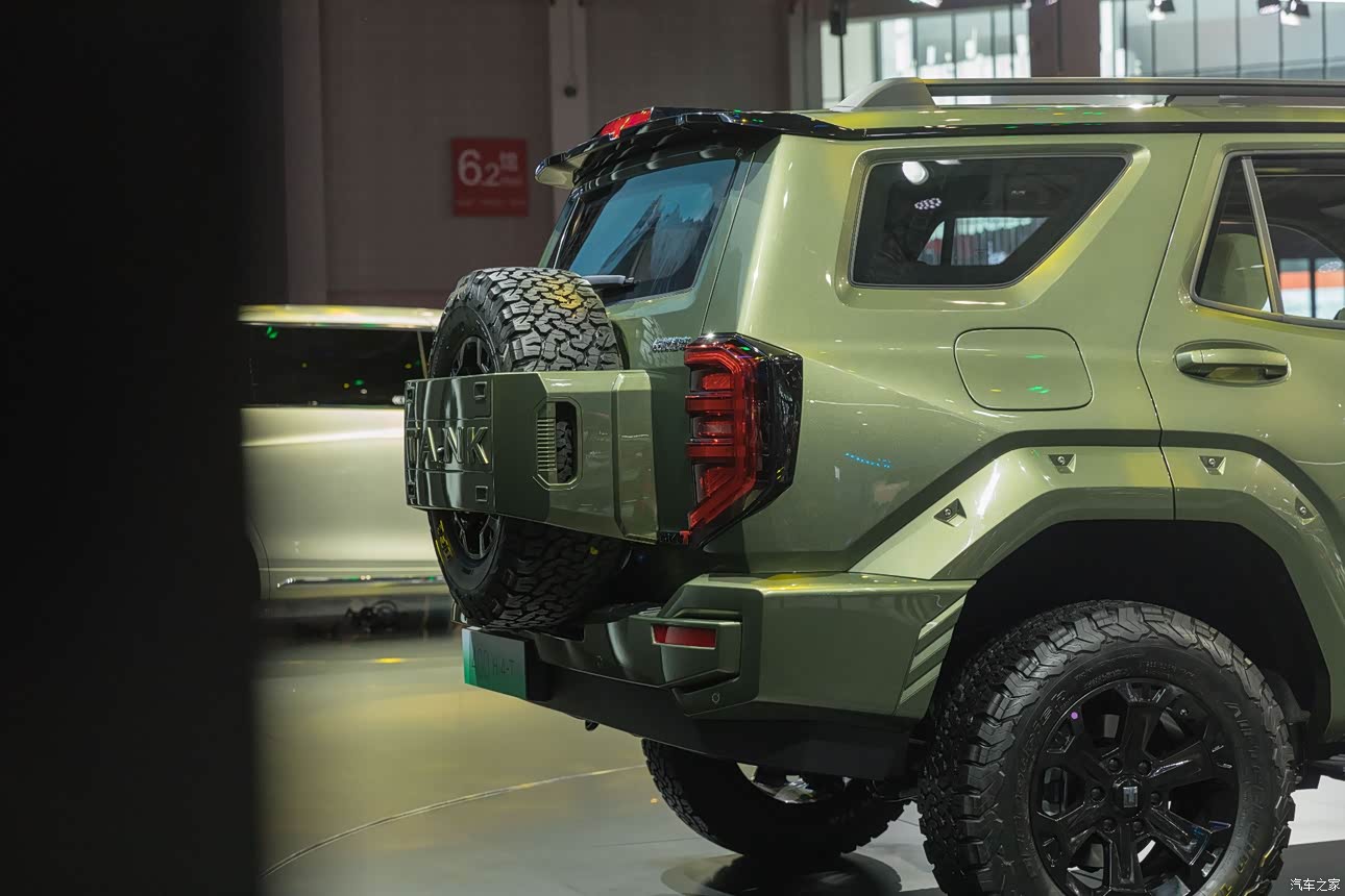 其实第一眼看到坦克400 Hi4-T有种似曾相识的感觉,它的外观酷似我之前在成都车展见过的“坦克300机甲版”,不过我觉的300那个更帅!再"机甲设计"风格的影响下,我们的坦克400 Hi4-T车型整车给人一种造型粗犷有力的既视感。也许是为了让坦克400更具硬派越野之风,所以我们看到它的设计风格要比目前其他在售硬派SUV的外观设计更加激进。比如前脸上装配了粗壮有力的双横辐式中网,给人以非常强烈的层次感及侵略性。同时,当然我也发现大灯组中带有U型日行灯带的设计,也在前脸粗狂之余增加了一丝精致感。 而从侧面看去,车身轮廓显的较为平直,不过大幅外凸的轮拱及内凹的车门散发极致的力量感。特别花心思的地方就是轮眉处使用了类似铆钉的孔位对其进行点缀,这样如果搭配越野的AT轮胎,越野属性进一步提升高(目前也不知道实车出来会配什么胎,不过这种车回来一定会改装的)。至于C柱后方窗户采用不规则形状设计,也是为了增加了车内透光率。 至于车尾,层行感是有的,精致感却是不足的,就好比尾灯实在没有出彩的地方。而且这一次坦克400 Hi4-T采用后挂备胎的设计,外挂裸露式的备胎装置印有TANK的标识,但是我并不喜欢这样的设计,我更喜欢那种把备胎罩起来的,最好TANK Logo还能发光就完美了。尾部唯一我觉的有心思的设计就是高位刹车灯,没有采用传统设计放在尾翼下方,而是放在上方,更容易让后车看清楚一些。 最后我看下这台车的离地间隙,前、后杠的样式,还有悬挂的行程,这些东西都证明该车将有强悍的通过性,再加上整车的改装较为方便,后期可玩性也很大 最后说下我对外观的总结,整台车设计给人的感觉,就是充满了极致的硬派越野风味,不过机甲风的设计比较比较小众,并不是所有人都能接受!