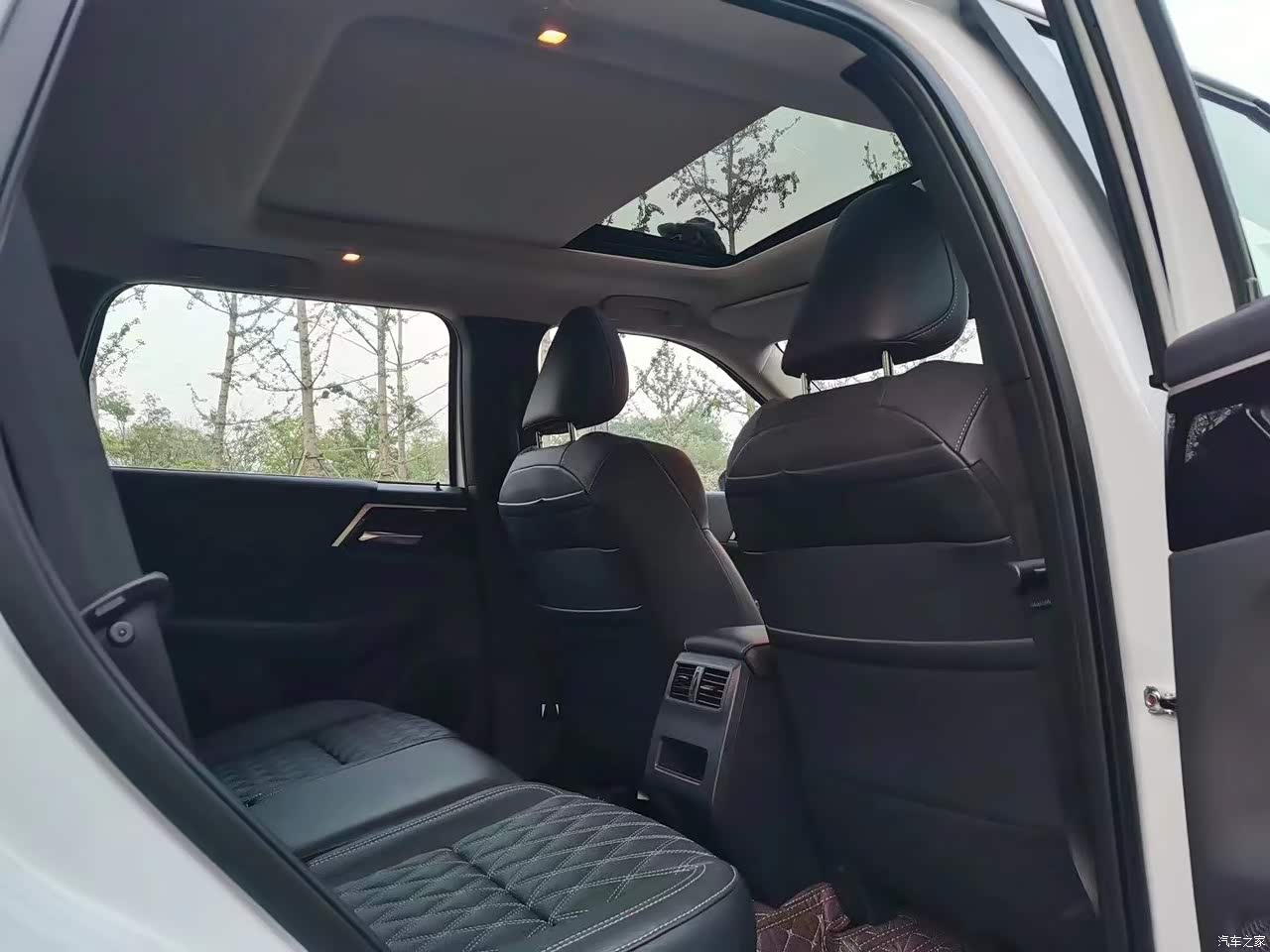 我在后排舒适坐姿下,腿部空间还有2拳的距离,头部空间就不用说了,是SUV的强项。超过1.8米车宽,同时坐3个人也完全没有拥挤感。