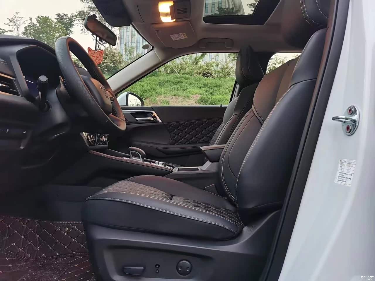 内饰无论是设计还是用料都很不错,空调出风口、门把手、方向盘和档把都有线条棱角分明的边框,和硬朗的外观很搭配,就是方向盘和档把的造型有点丑,不是符合人体工程学,握感不太舒服。