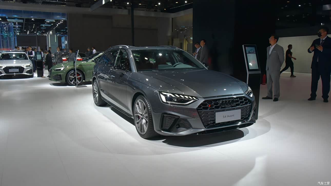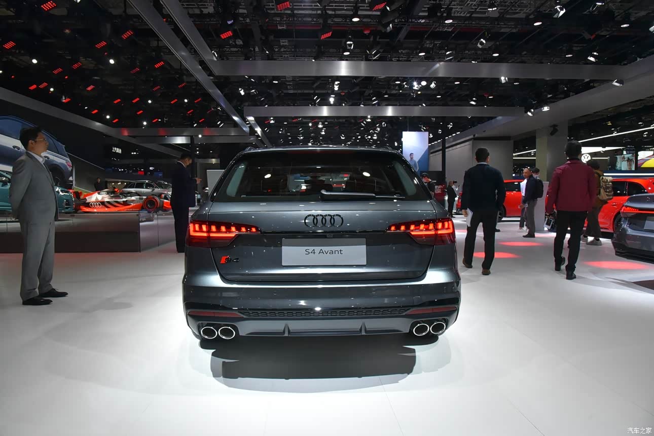 奥迪S4 Avant是奥迪S系列的入门级性能车型,整个设计将与奥迪A4接近。但是又有很多运动元素。所以奥迪S4 Avant在外观上并没有什么夸张的特殊造型,基本上中规中矩中又点透着运动气息,怎么说呢?对它就是同级别车里面独一无二的豪华运动旅行车。配有专属的“S”标识以凸显身份 车头的前脸位置进气格栅及轮廓还有4环的奥迪车标均采用了各家具有运动气息的黑色设计,比镀铬中网更加具视觉冲击性。中网右上角位置还配有奥迪性能车专属的“S”标识以凸显身份。车头部位还配置有毫米波雷达跟激光雷达,所以这台车从车头部位的配置上就可见一斑了。并且车头位置也装饰有黑色的运动套件。 侧面看这台车最值得一提的是奥迪的S新系列的汽车倒车镜壹万都会采用银色面漆,就是俗称的银耳。但是这款奥迪S4 Avant的倒车镜采用了跟车身套件选颜色形同的黑色设计。大约4.8米长轴距2.8米的车身标配了Audi Sport星型泰坦黑19英寸轮圈,整体样式为五辐三叉样式轮辋搭配红色运动刹车卡钳,整体上运动风格还是不存的,并且在车身顶部还设计有行李架,方面安装旅行用行李架套件,安装行李架套件后不管是在车顶放自行车或是放行李都是狠方便的。 车尾不风有几点值得说一下,首先他还是采用了奥迪的黑色车标,与车身整体上的运动套件相呼应。并且可以看到双边4排气口的排气一看就知道发动机性能先进给力。