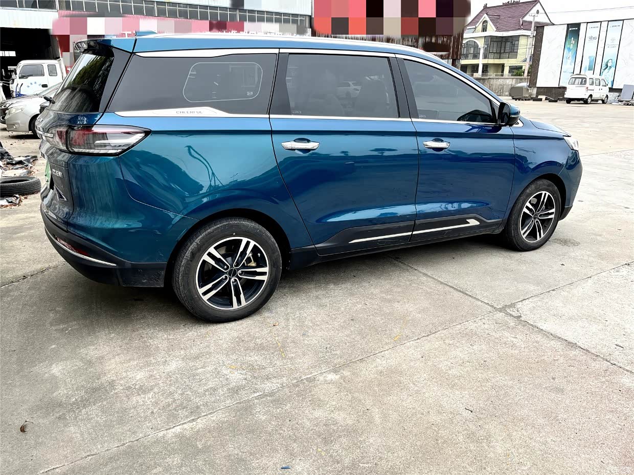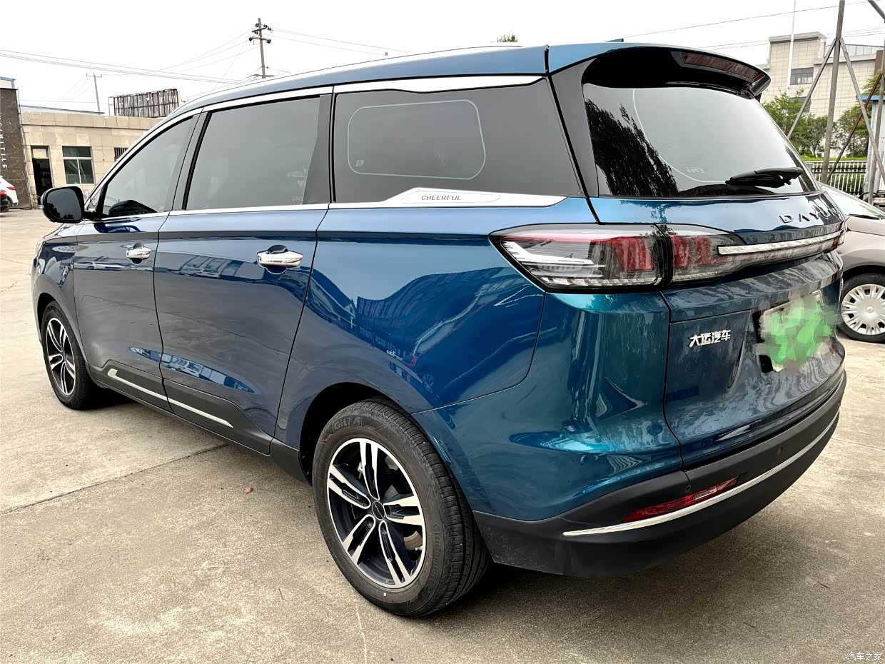 前脸的灯组设计很有特点,还搭配了蓝色、黑色饰条,相当个性。侧面是一般MPV的样子,双色的轮毂、硬朗的腰线等等,细节还是可圈可点的。