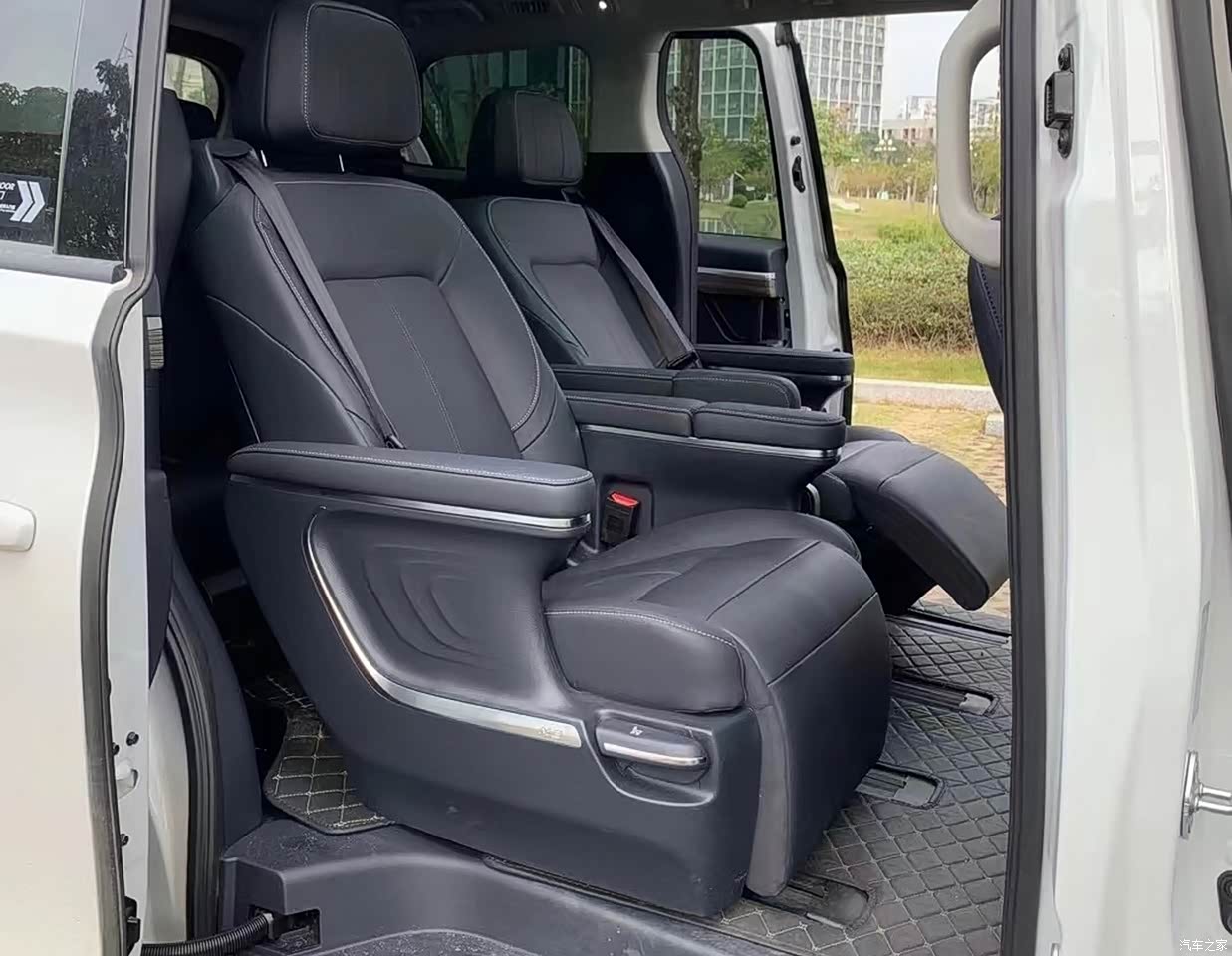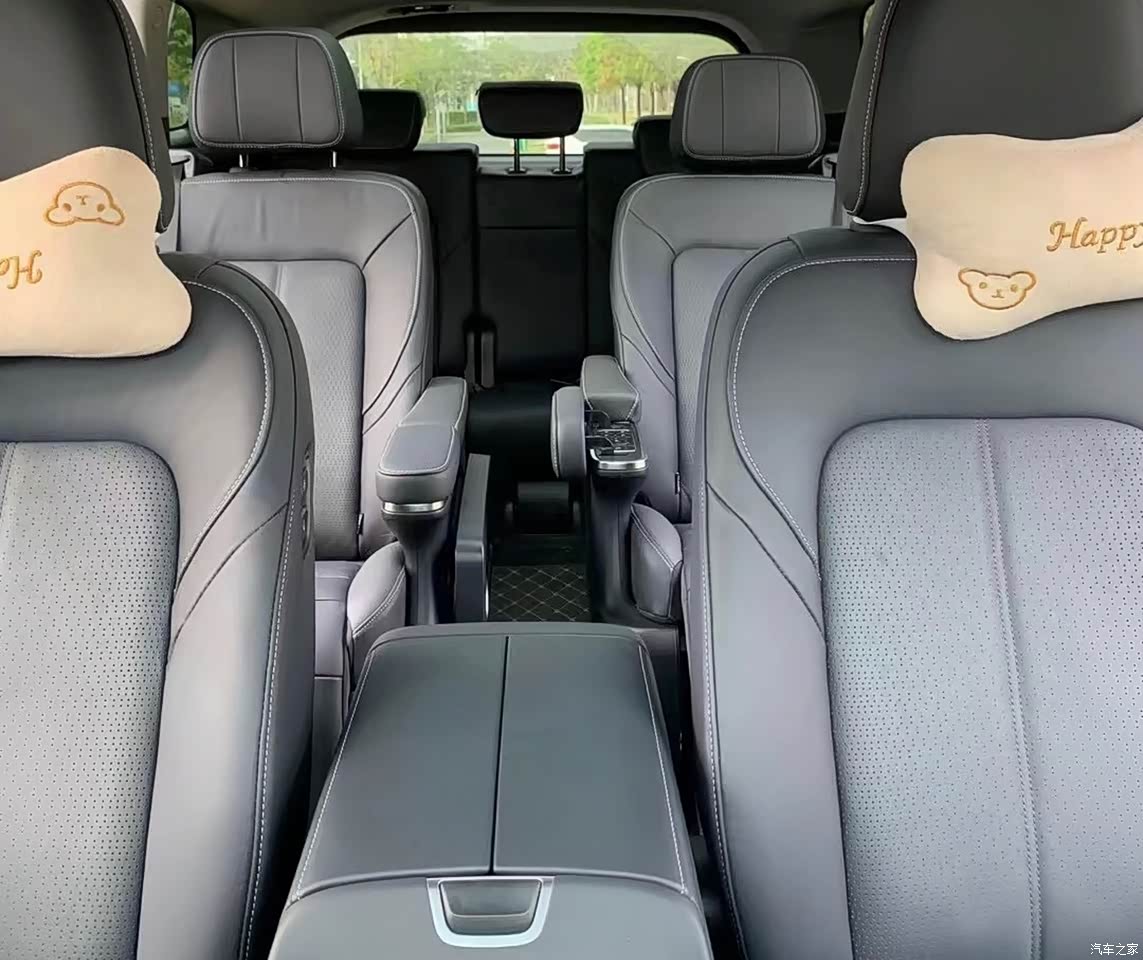 皮质座椅宽大舒适,包裹性不错。一二排都能够电动调节,还有加热通风。二排座椅甚至还多了按摩功能,实在是舒适啊