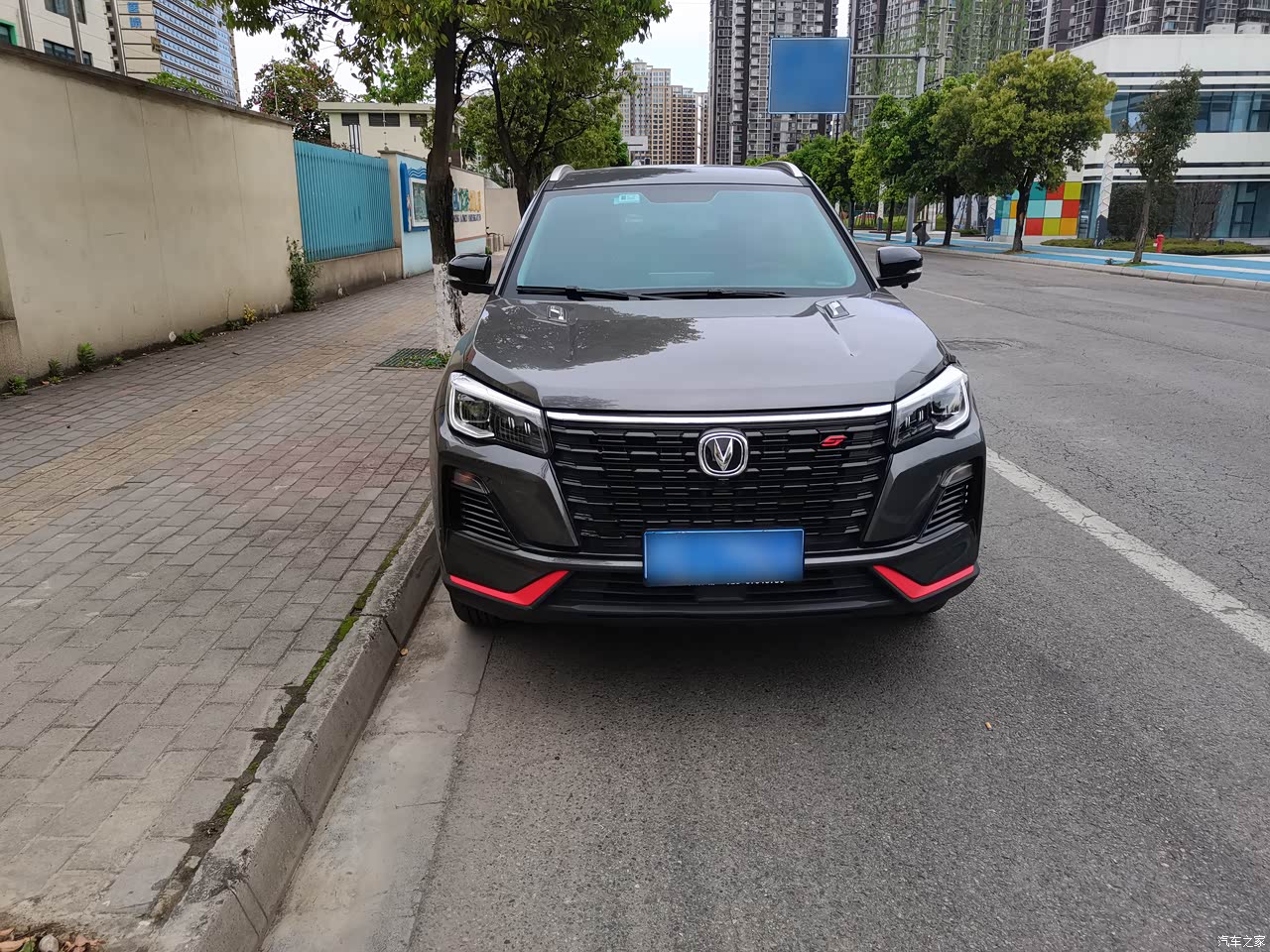 CS75的外形设计也非常年轻和运动化,前脸黑色的进气格栅加上红色前唇装饰还是非常协调的。两个侧前方45度角看起来都非常帅气。侧面的线条也沉稳,尾部是贯穿式的尾灯设计,不仅让车尾看起来更加有立体感,也多了几分科技范儿。