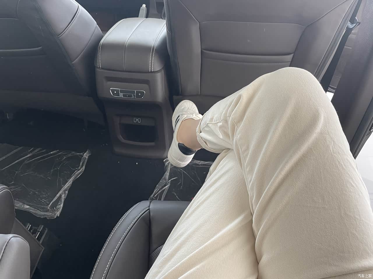 中控整体看起来不错,就是塑料感强些,不过这个价位在这摆着呢。座椅包裹也行,值得一提的就是二三排空间还能翘上二郎腿