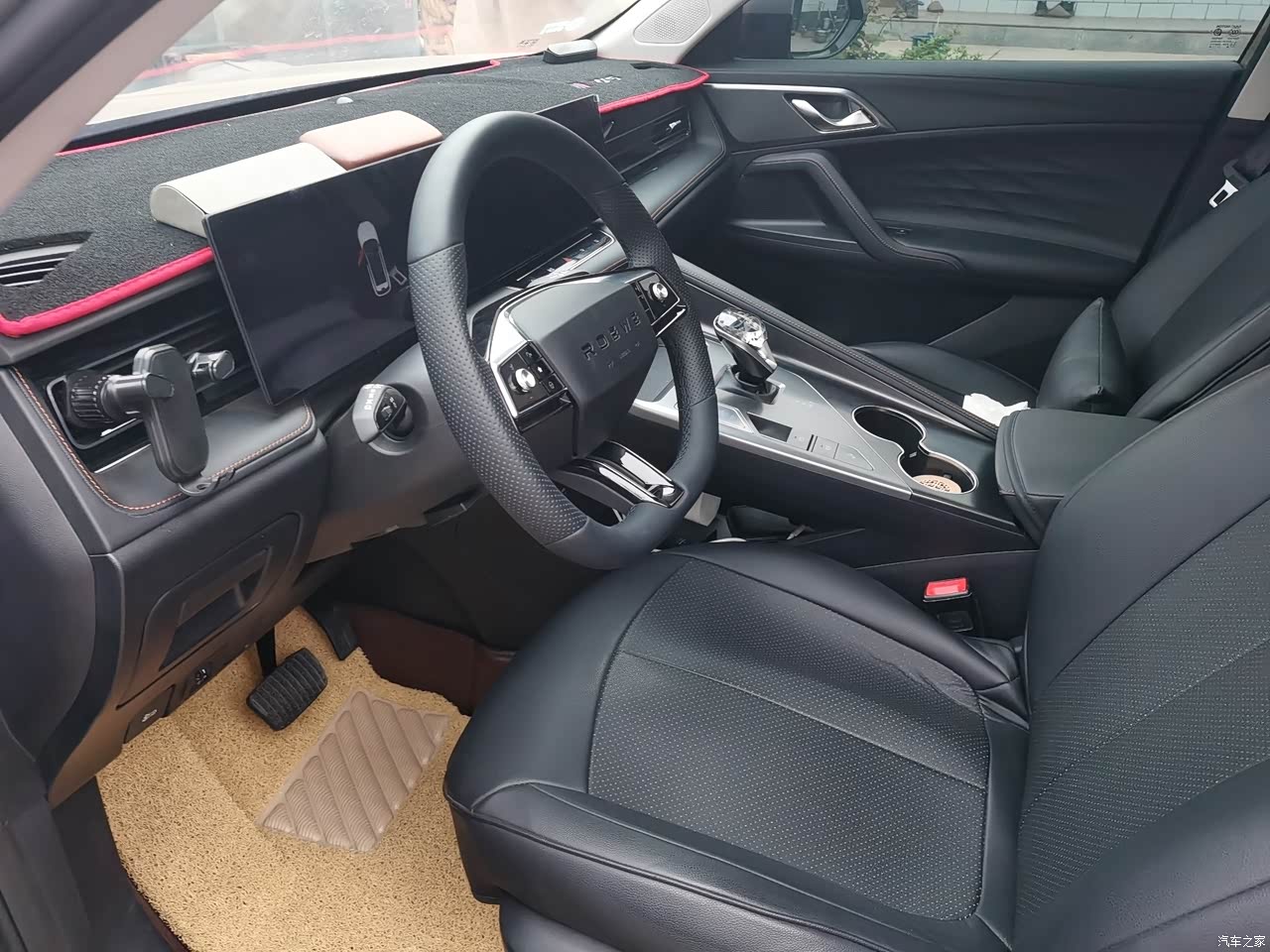 我的是黑色内饰,很沉稳的颜色,座套买的也是全包黑色。座椅舒适,主驾6向调节,副驾4向。屏幕大屏,看起来也舒适,左侧中控显示,右侧操作设置,很方便!