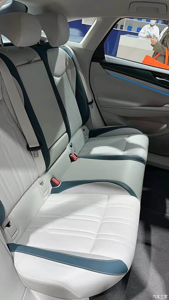 两个充电接口,手机的快充,两个杯座,装上扶手箱,这一边的储物空间呢,还是OK的。2023年初,我觉得好多车型的座椅舒适性上了一个大台阶,真的是整体的感觉都不一样了,但是这张座椅只能说是一个正常中规中矩的水平,那对于大众来说,一贯卷什么卷轴距,卷后排空间,咱们后排看看到了后排这腿部空间,着实是没毛病,因为这轴距在这,两拳多的一个腿部空间,但是整体的坐姿会让人觉得有一点局促,就是坐垫儿的高度呢,是蛮高的,我觉得可以看出,可能大众在电动化时代如何处理好电池的厚度,底板的这种高度,以及车内如何打造一个舒适的乘坐感,还是需要再精进一些的,因为这个坐垫高,对腿的承托很好,整个靠背的角度,却没能进一步的往后仰,所以整个会有点被夹在这儿的感觉,包括坐直之后,头是能蹭到顶棚的,所以这个头部空间对于我来说也是相对不够宽敞,不过这个天幕的感觉应该还不错,官方介绍说这个天幕隔光隔热的效果,也可能通过中控屏幕,或者语音交互控制它一个隔光率。